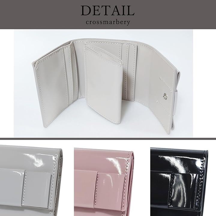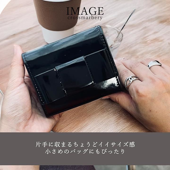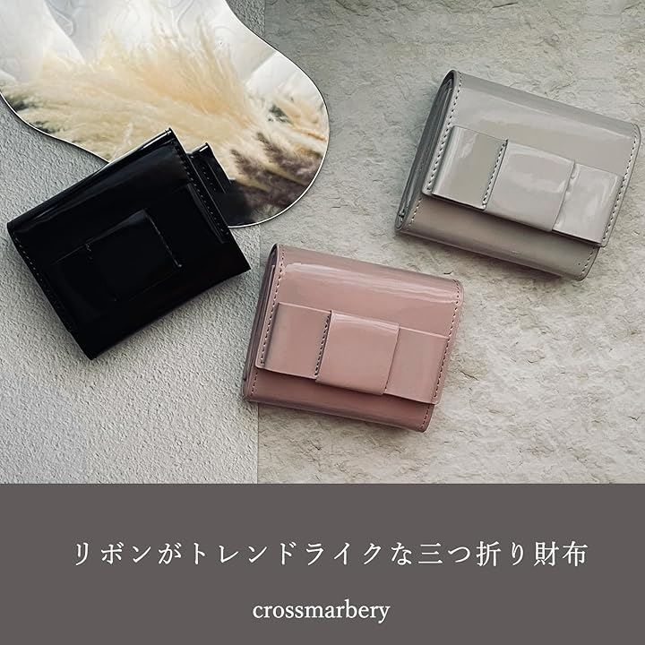 ミニウォレット レディース コンパクト 可愛い おしゃれ ボックス型 小銭入れ エナメル カード入れ 小さい財布 三つ折り リボン 手のひらサイズ R104