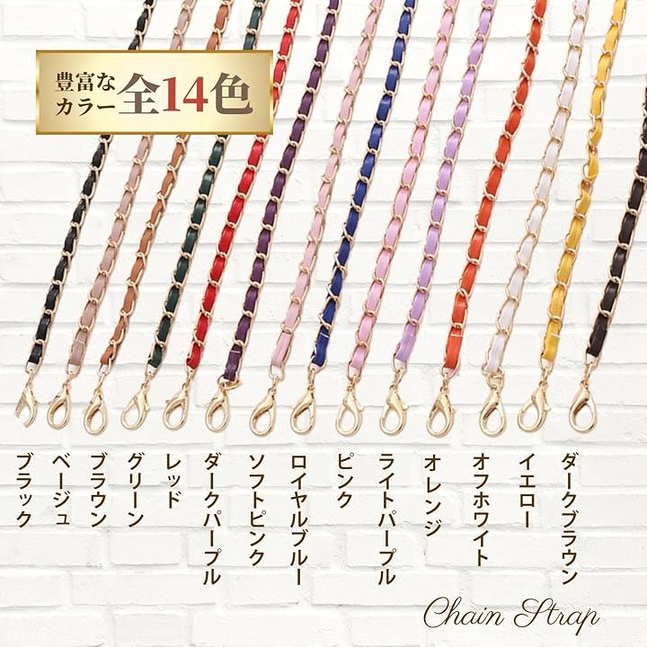 細身でおしゃれなチェーンは軽量設計で疲れにくく、120cmの長さで斜め掛け・首掛け・肩掛けに対応。