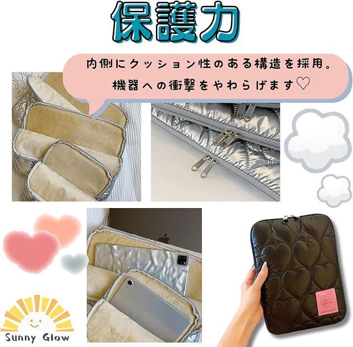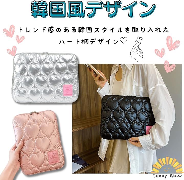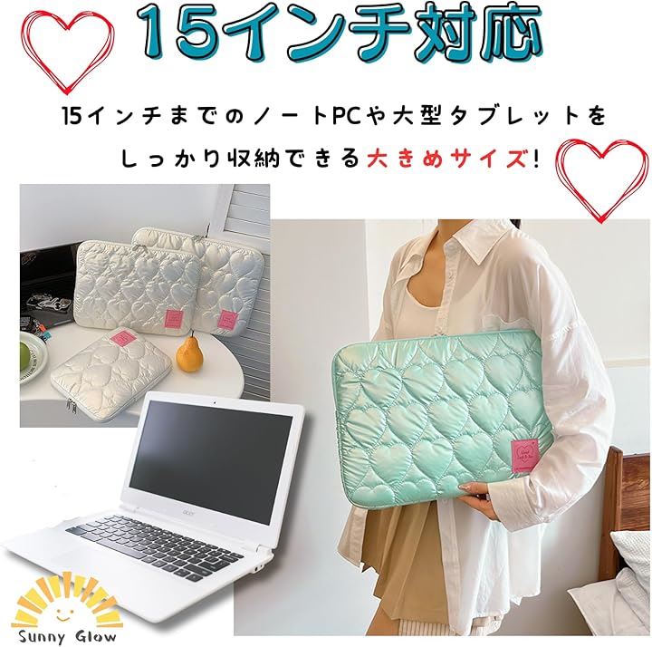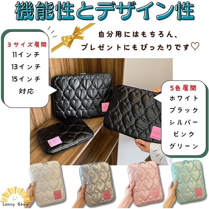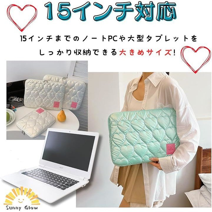 パソコンケース ハート柄 韓国風デザイン タブレット ノートPC iPad 収納対応 レディース おしゃれ 15インチ