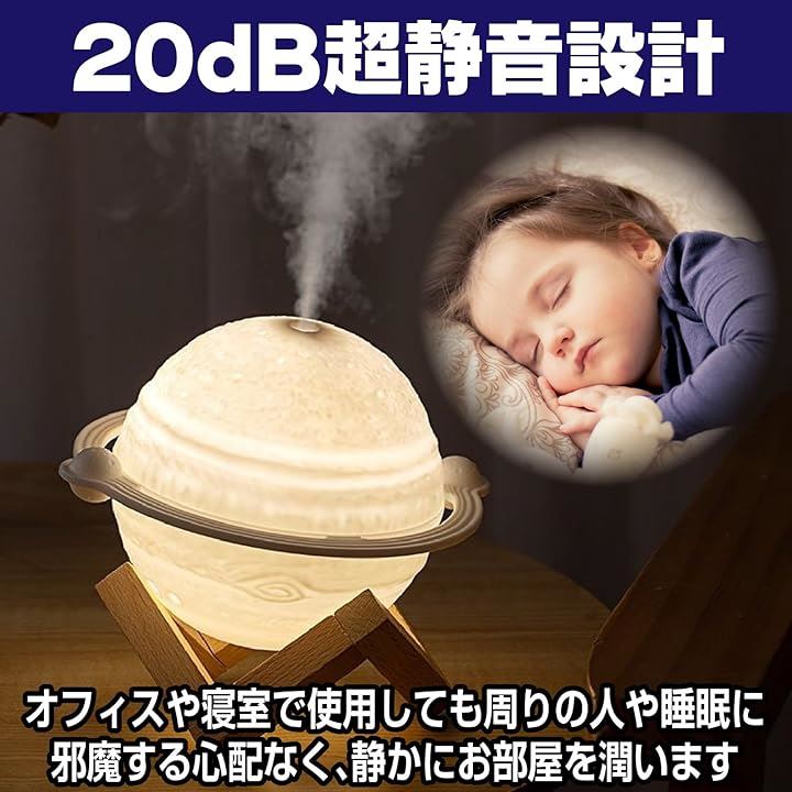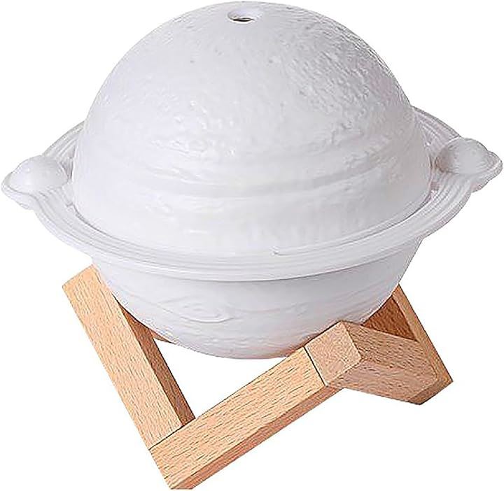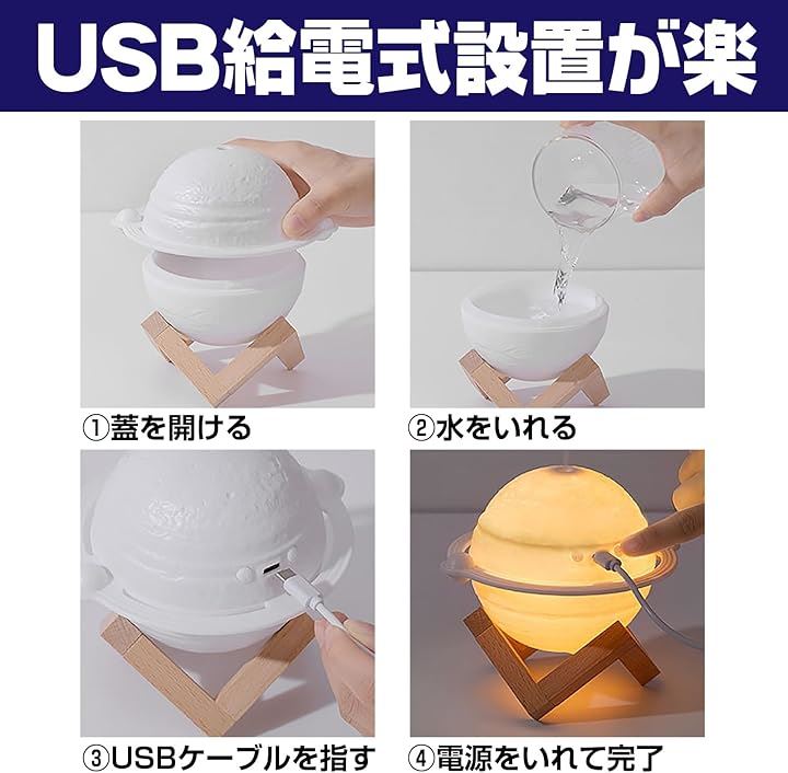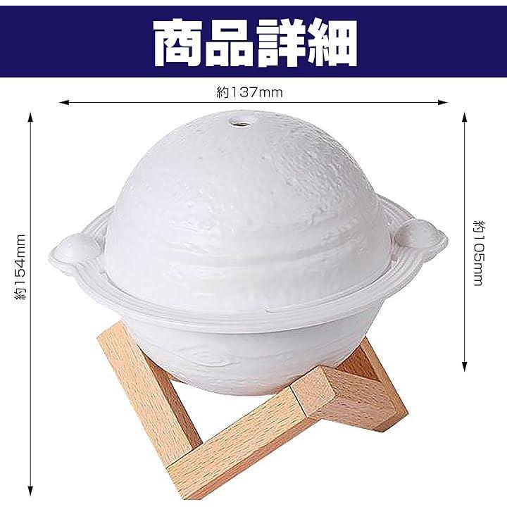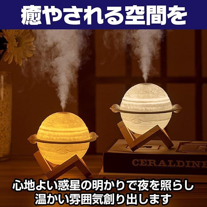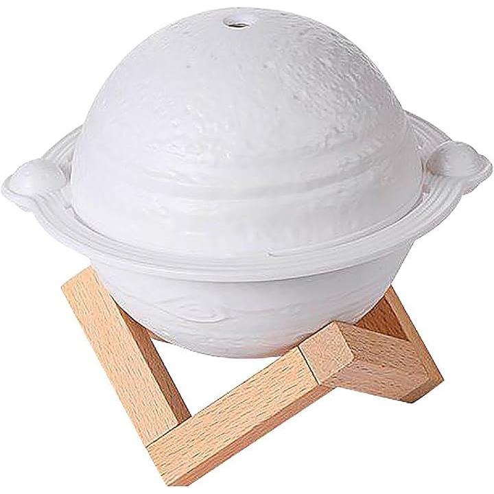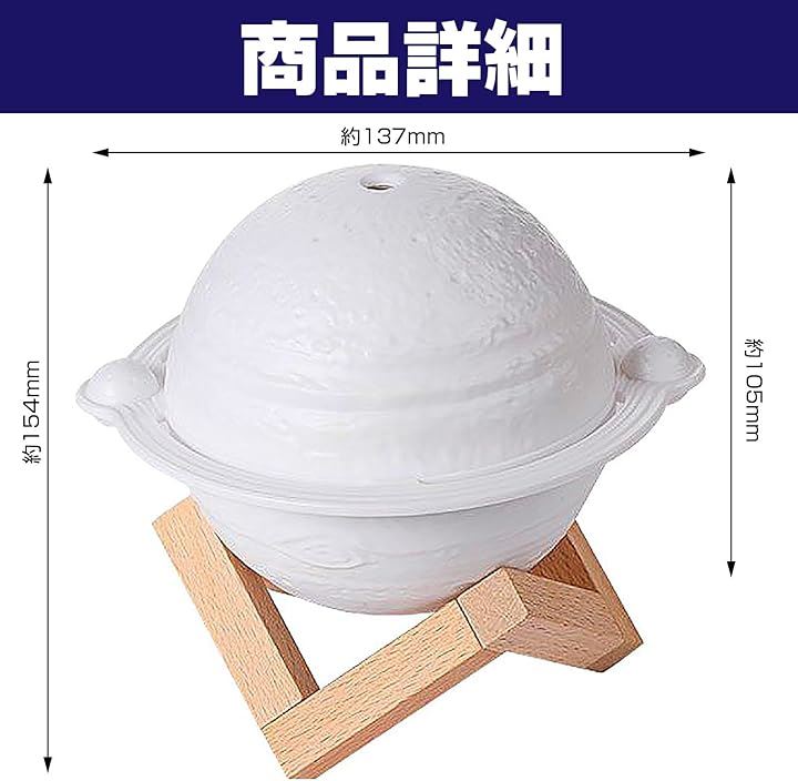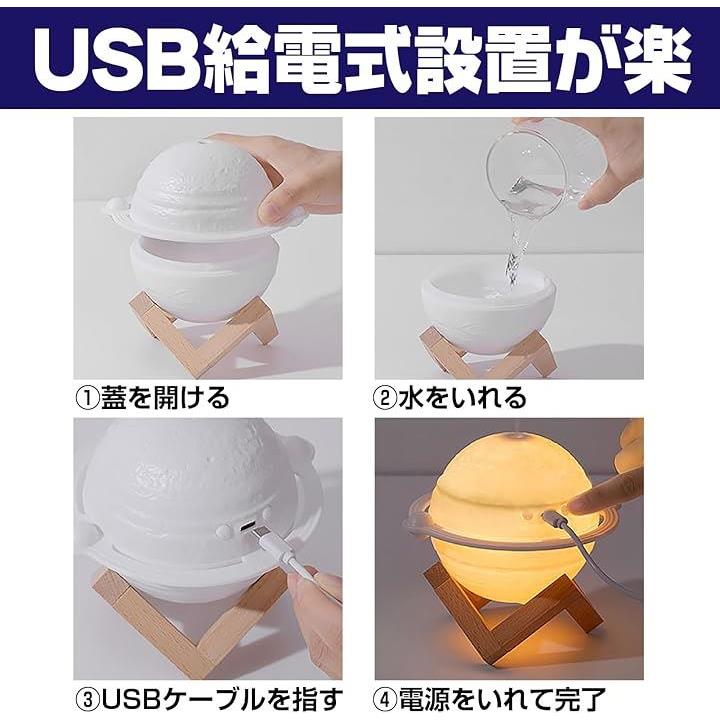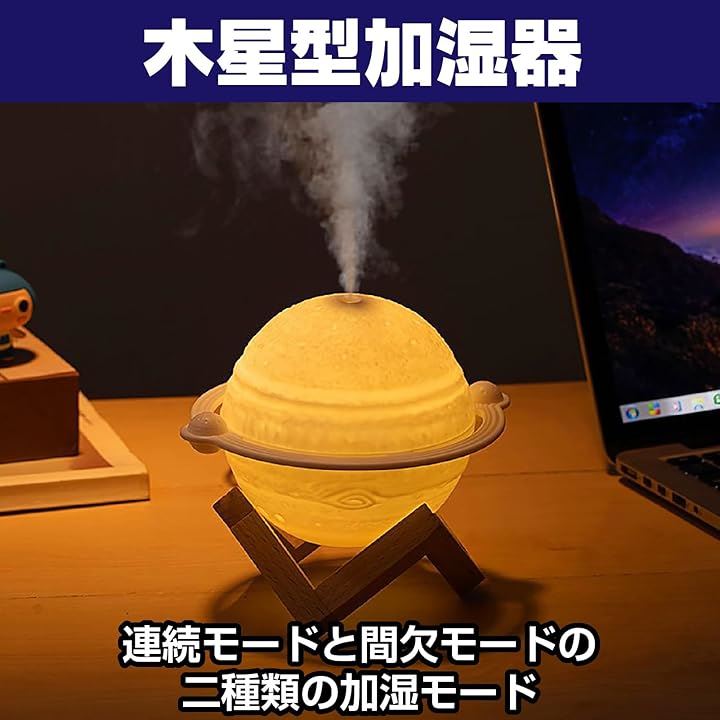 木星型 加湿器 3色ライト USB給電 小型 卓上 インテリア 木製スタンド ジュピター 乾燥対策 オフィス リビング 寝室