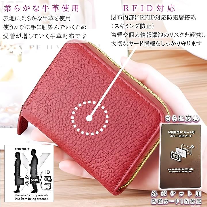 ミニ財布 カードケース レディース スキミング 防止 防磁カード 外ポケット付き コインケース コンパクト 磁気防止 クレカケース じゃばら 二つ折り財布