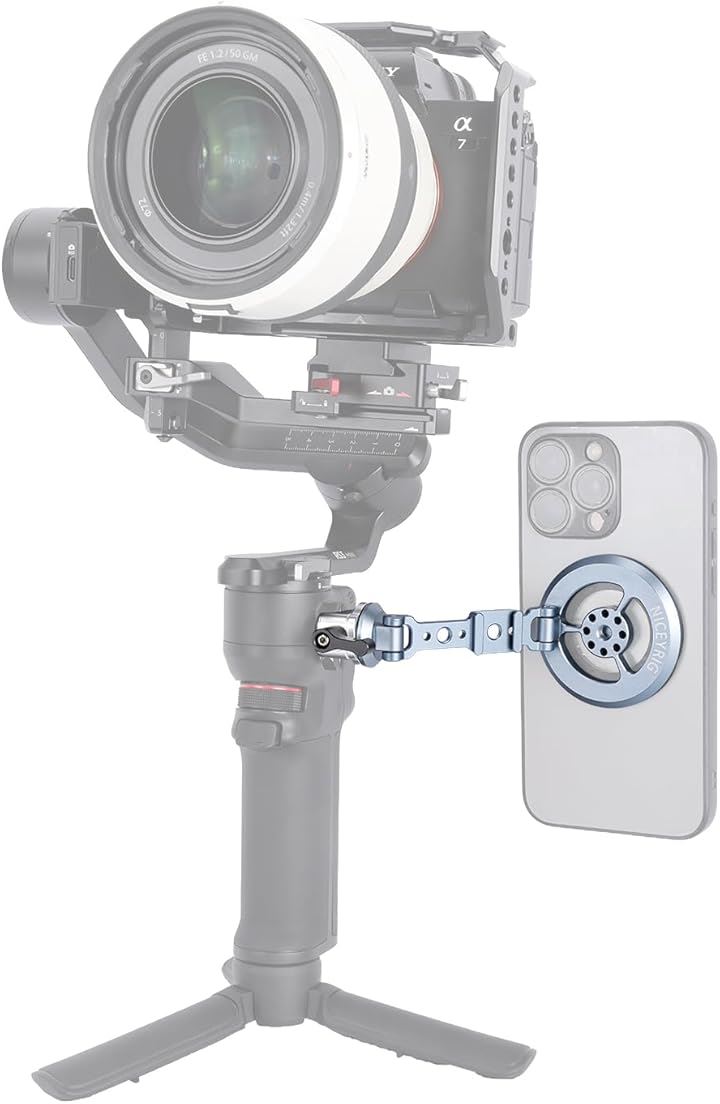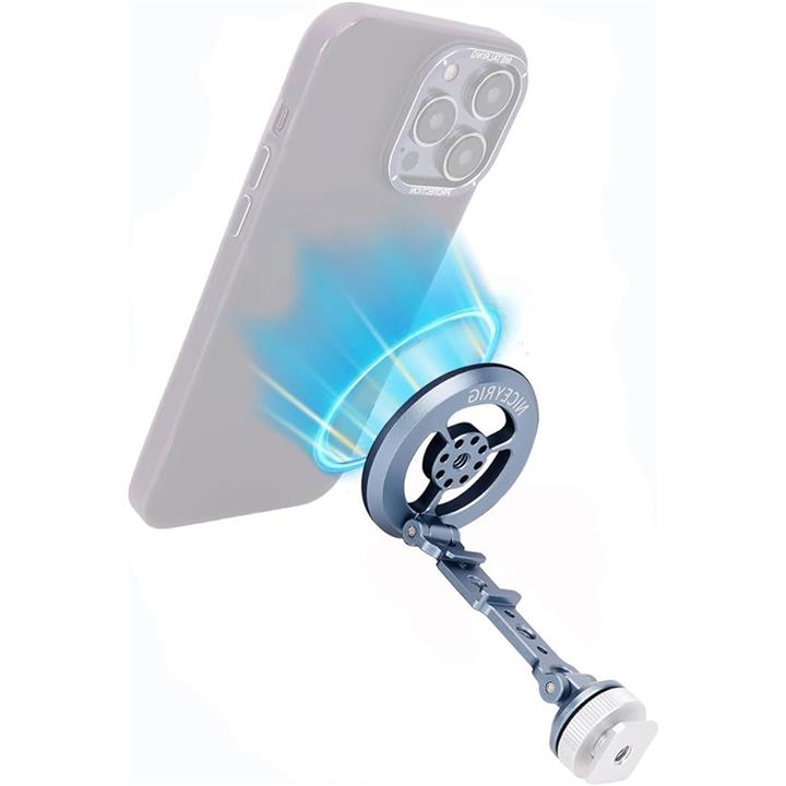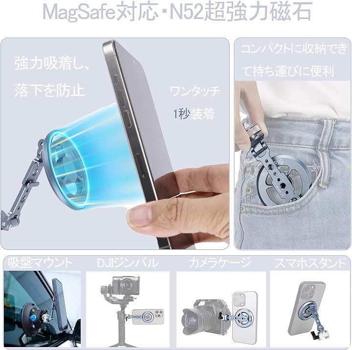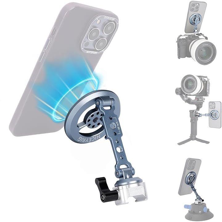 MagSafe対応 マグネット式スマホホルダー 三脚 アタッチメント N52超強力磁石 360°回転 1/4ネジ穴 コールドシュー付き 折りたたみ式 スマホスタンド NATO規格-623