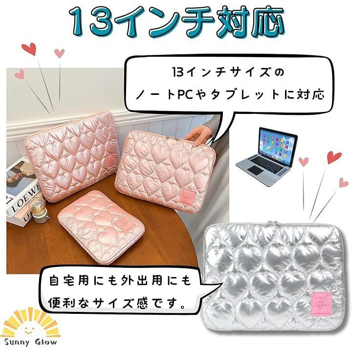 パソコンケース ハート柄 韓国風デザイン タブレット ノートPC iPad 収納対応 レディース おしゃれ 13インチ