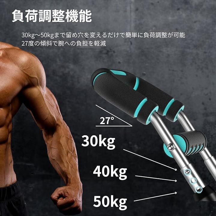 アームバー 前腕 筋トレ 胸筋 ディップスバー トレーニング器具 ジム 大胸筋 家トレ 筋力 強化 スプリング式 30kg 40kg 50kg