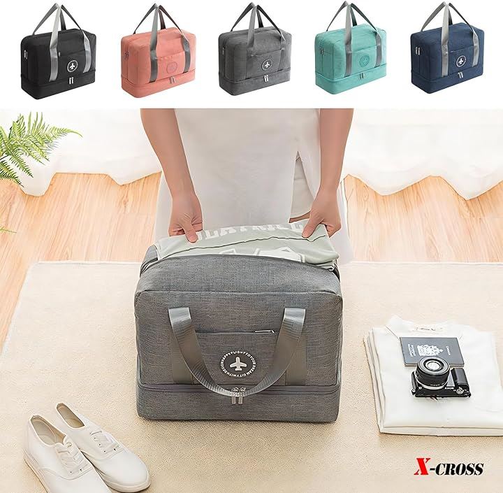 クロス スポーツバッグ 軽量 大容量 フィットネス ジム ヨガ シューズ収納 おしゃれ アウトドア 多機能 ナイロン 衣類 かわいい 靴入れ付き ポケット付き バスケ バスケット バレーボール ゴルフ テニス プール トート 折り畳み