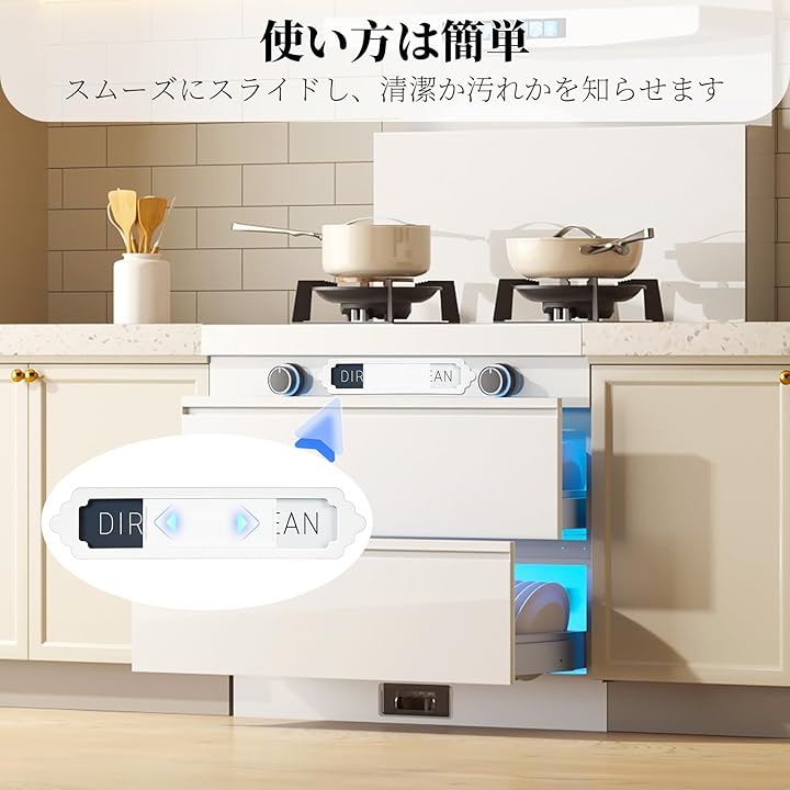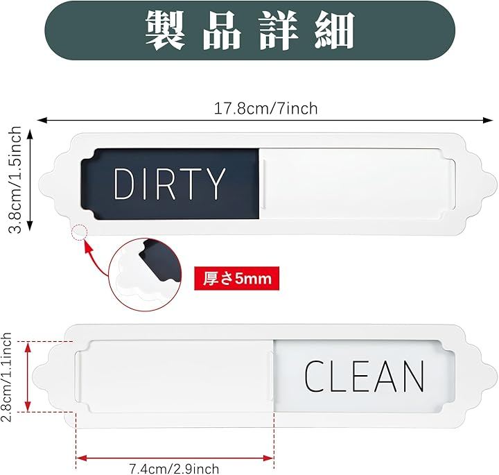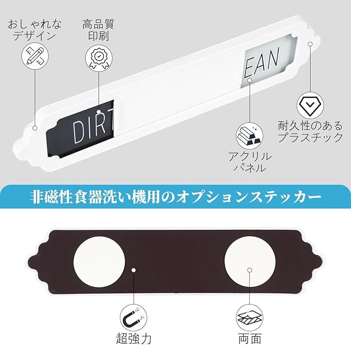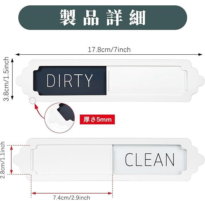 食器洗い機用マグネット Clean Dirty 2枚入り スライド式 サインプレート キッチン 冷蔵庫用 テープ付き