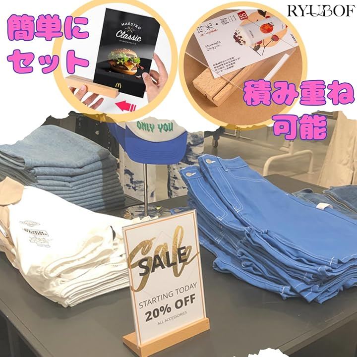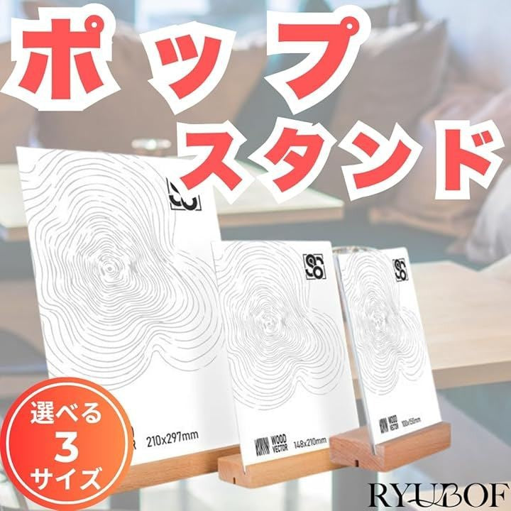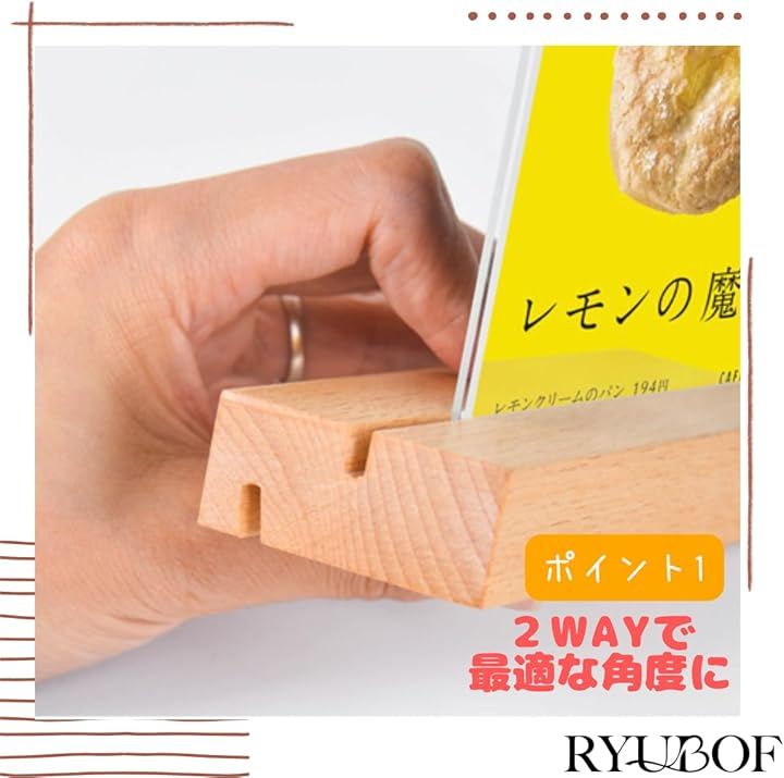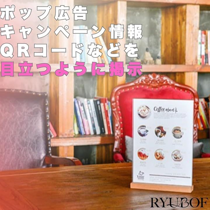 ポップスタンド 卓上 メニュースタンド ポスタースタンド アクリル 2WAY 角度調整 ウッド土台 QRコード おしゃれ ディスプレイ用品