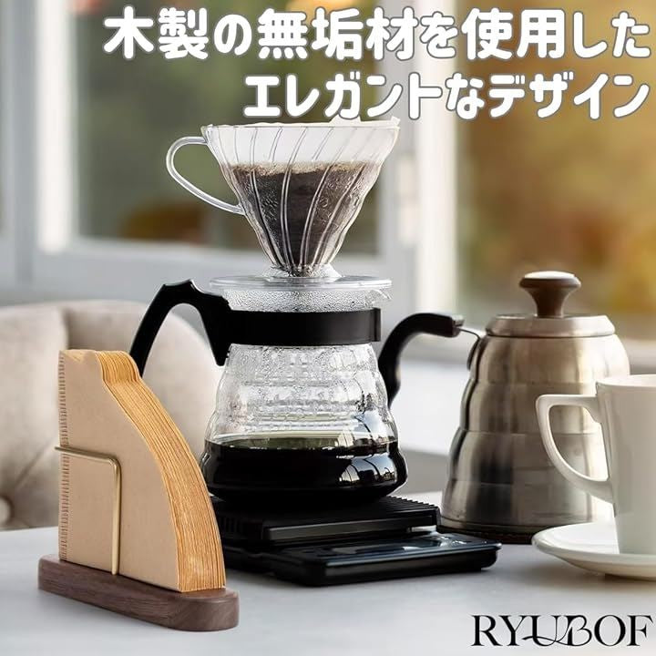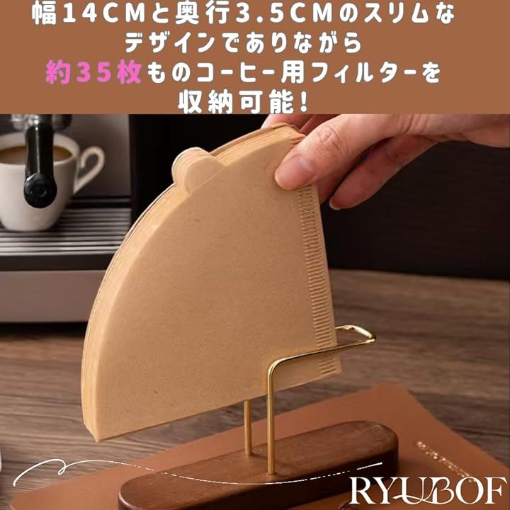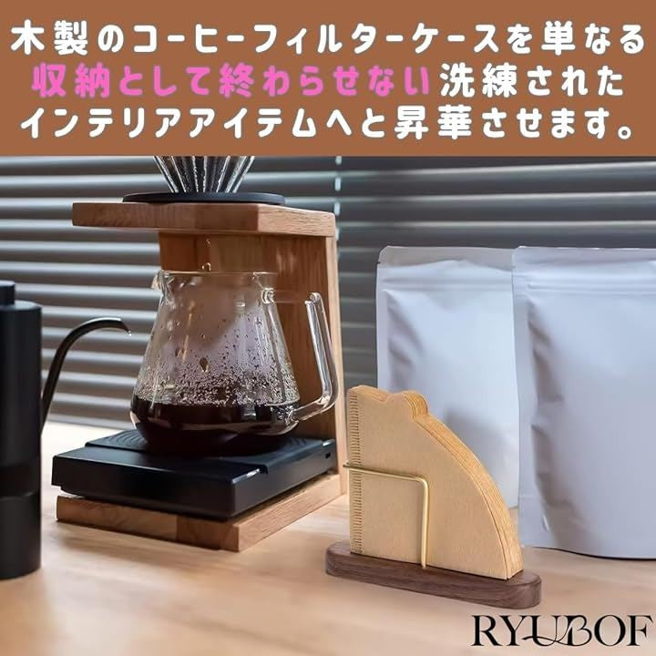 コーヒーフィルターケース スタンド 木製 真鍮 おしゃれ 円錐 台形 対応 ペーパーフィルター 収納 ホルダー ドリップスタンド