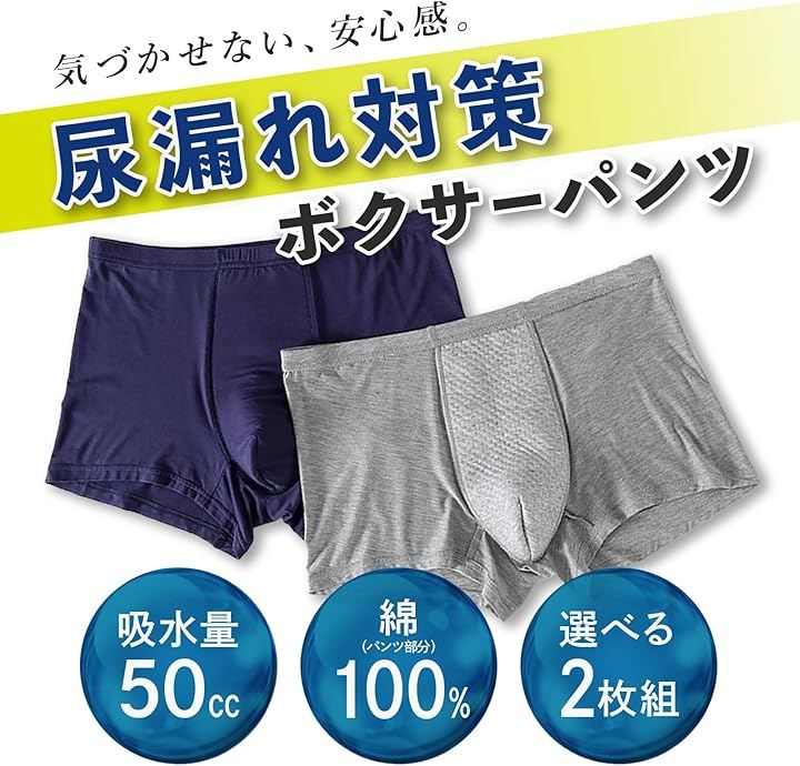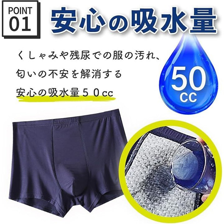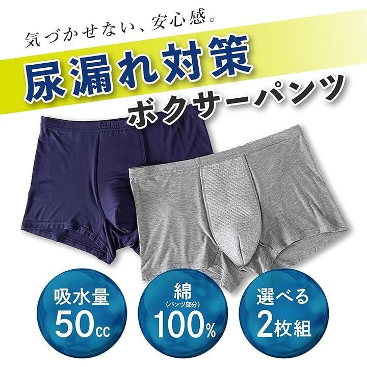 GLOFIN 尿漏れパンツ 男性用 失禁 大きいサイズ ボクサー 医師推奨 50cc 2枚セット 前開き 消臭 抗菌 洗える パッド
