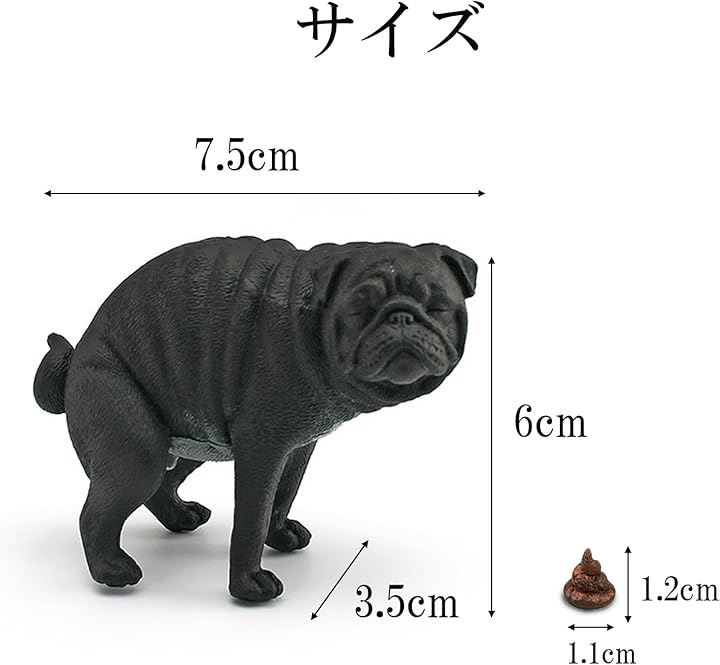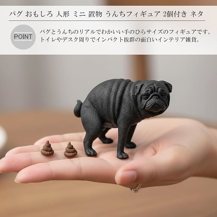 犬 パグ 人形 置物 おもしろ フィギュア うんち 2個付き インテリア グッズ ミニ