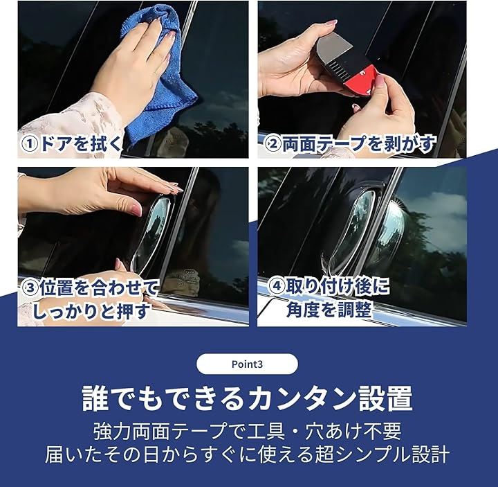 サイドミラー 補助ミラー 2個セット 車 死角 汎用 スライドドア 等 角度調整可能