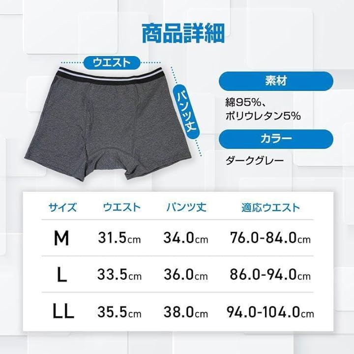 GLOFIN 尿漏れパンツ 男性用 失禁 ボクサー 医師推奨 100cc 2枚セット 前開き 消臭 抗菌 洗える パッド