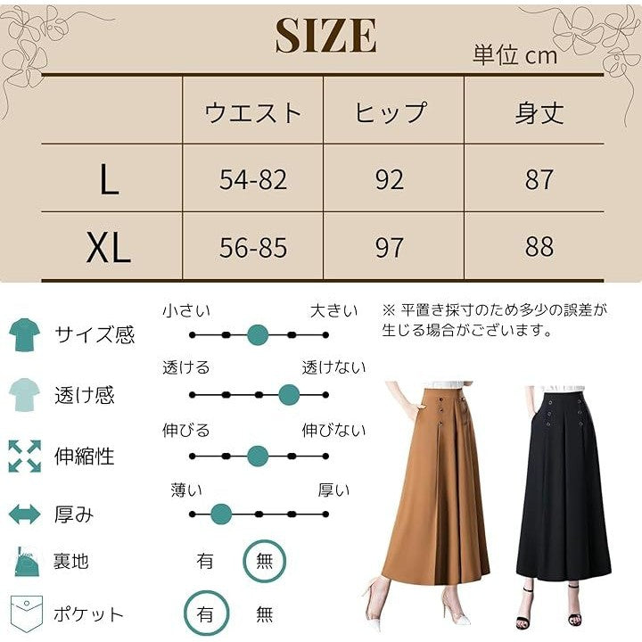 [CALM.st] ワイドパンツ レディース きれいめ ロング ガウチョ フレア パンツ スカーチョ 通年 韓国風 ハイウエスト 9分丈 |