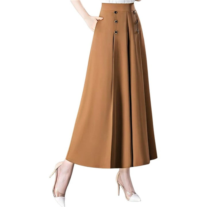 ワイドシルエットが下半身の気になる部分を自然にカバーしながら、上品な大人の女性らしさを演出。