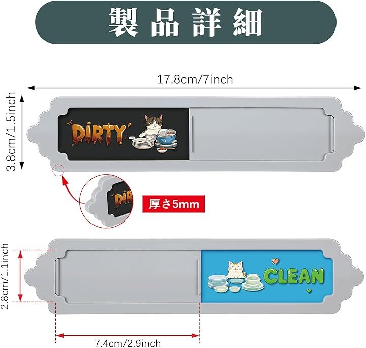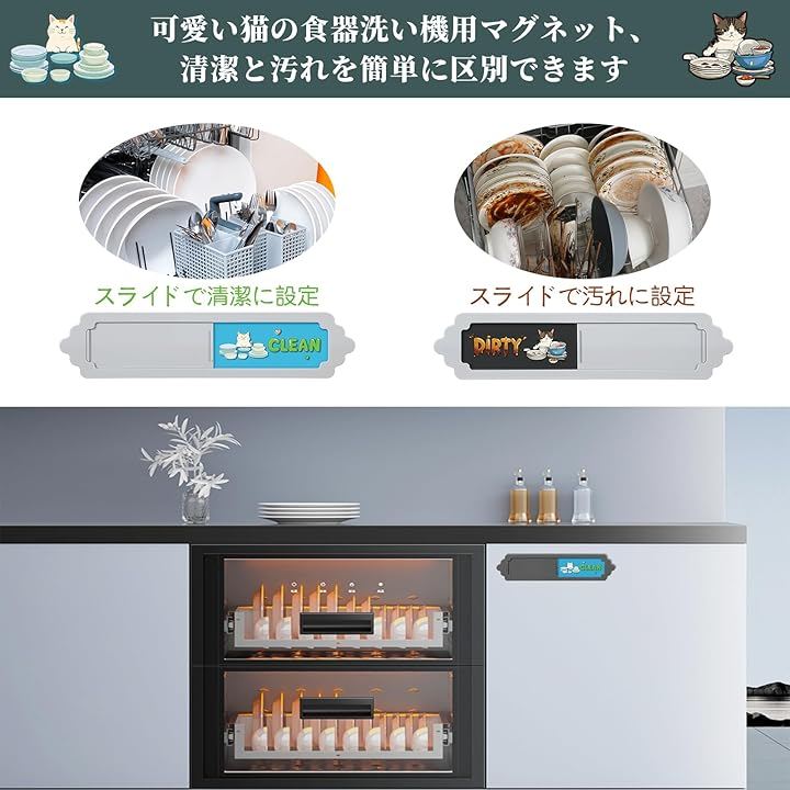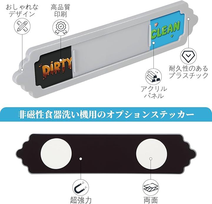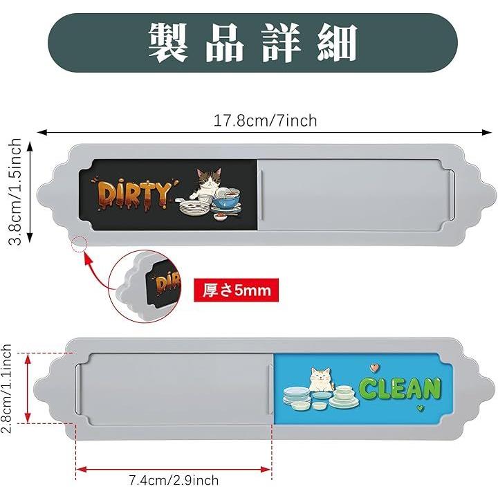 食器洗い機用マグネット 2枚入り Clean Dirty スライド式 サインプレート キッチン 冷蔵庫用 テープ付き