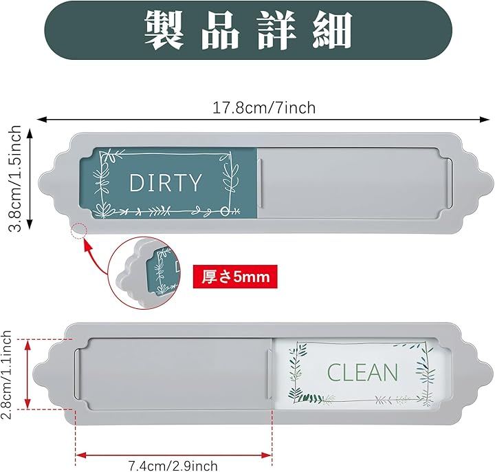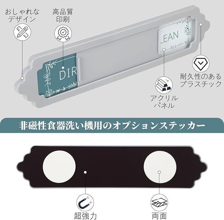 食器洗い機用マグネット 2枚入り Clean Dirty スライド式 サインプレート キッチン 読みやすい テープ付き