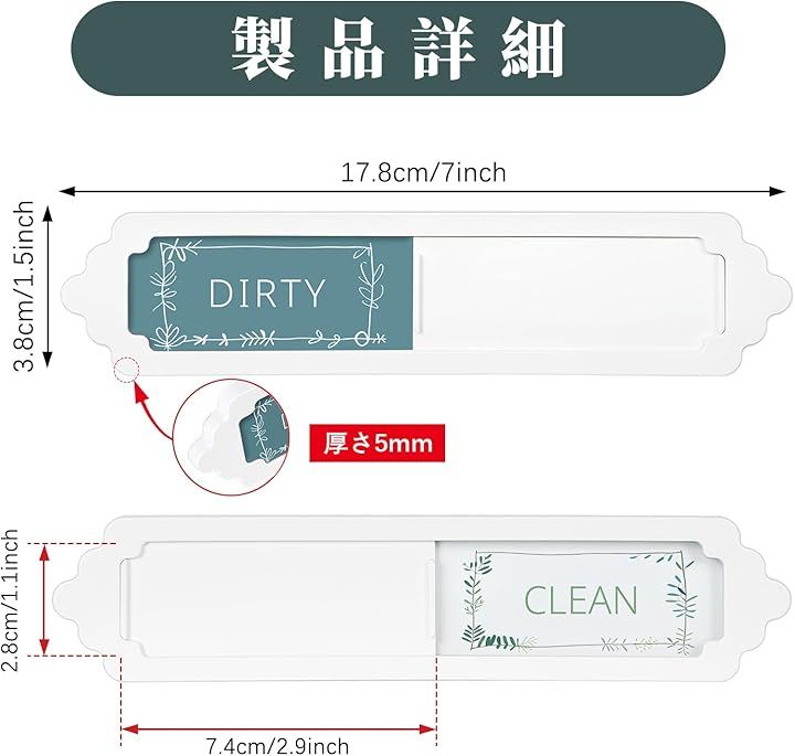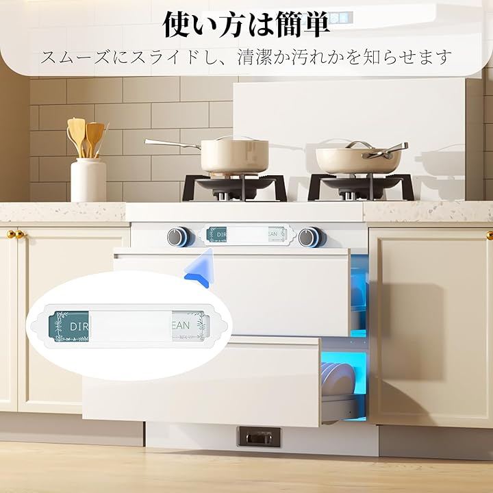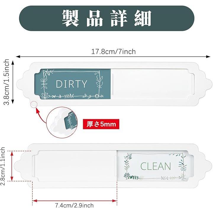 食器洗い機用マグネット Clean Dirty 2枚入り スライド式 サインプレート キッチン 冷蔵庫用 読みやすい テープ付き