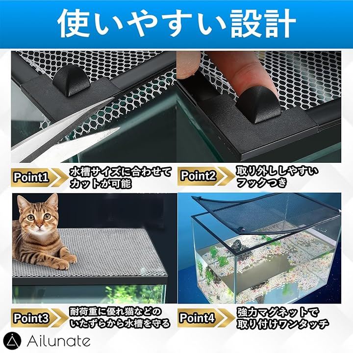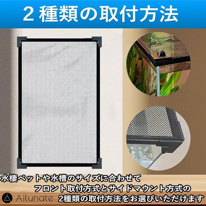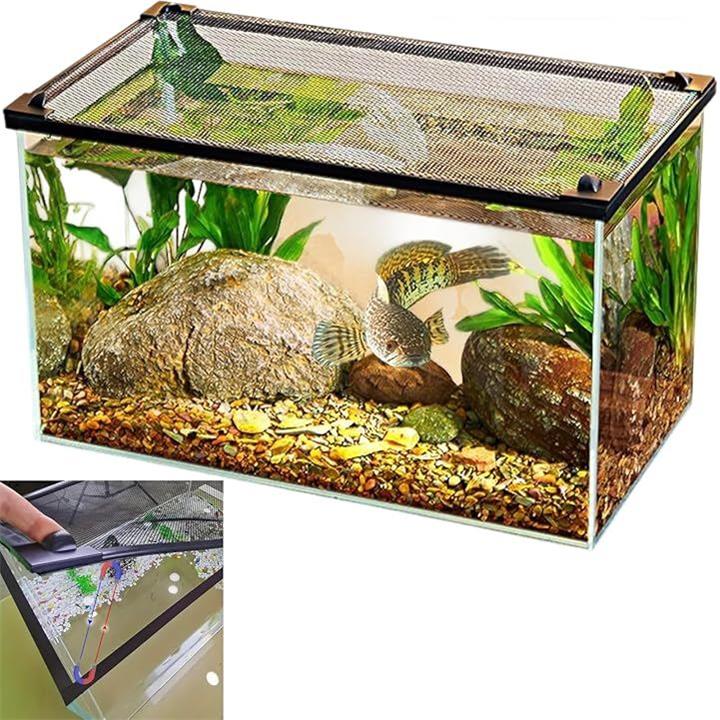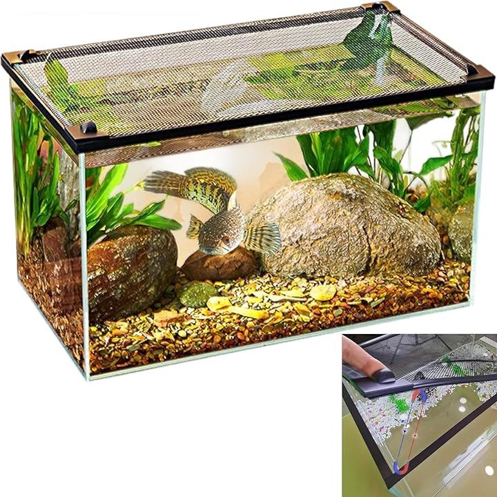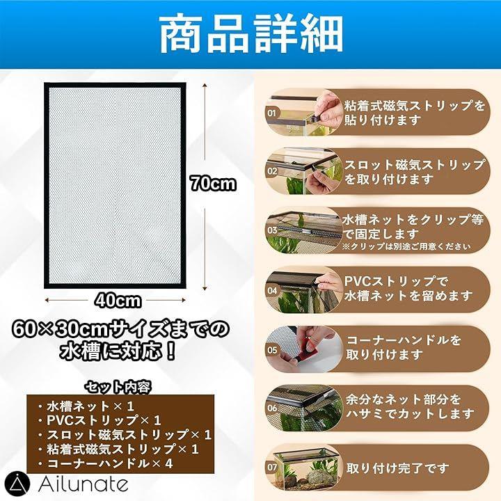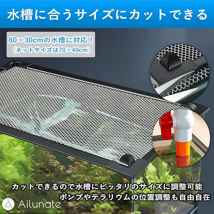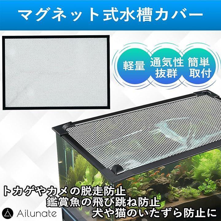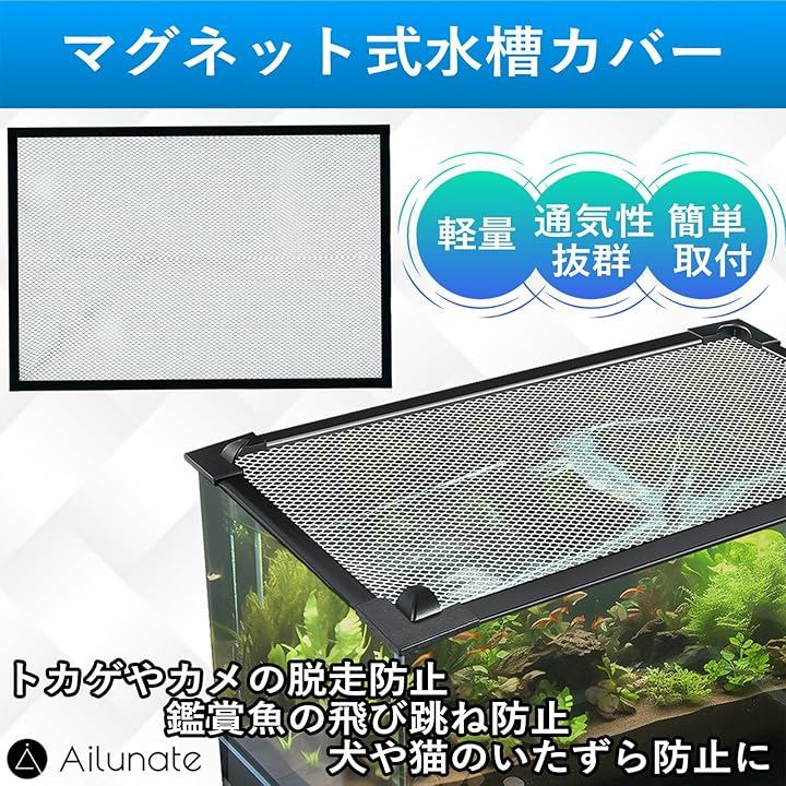 水槽カバー 脱走防止ネット メッシュ マグネット式 蓋 魚 カメ 爬虫類用 サイズ調整可能 簡単 取り付け 設置 ふた