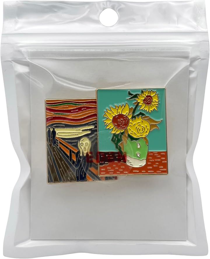 ゴッホのヒマワリ & ムンクの叫び ピンズ ピンバッジ 2種セットE1036
