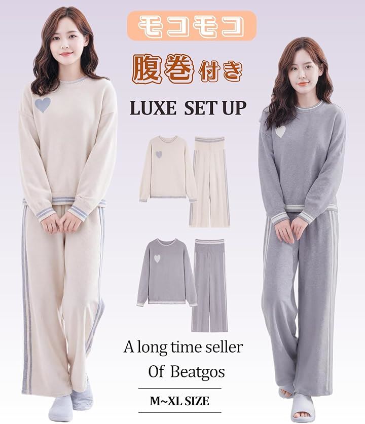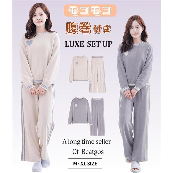 腹巻付き ルームウェア 部屋着 パジャマ レディース モコモコ 暖かい 長袖 春 秋 冬