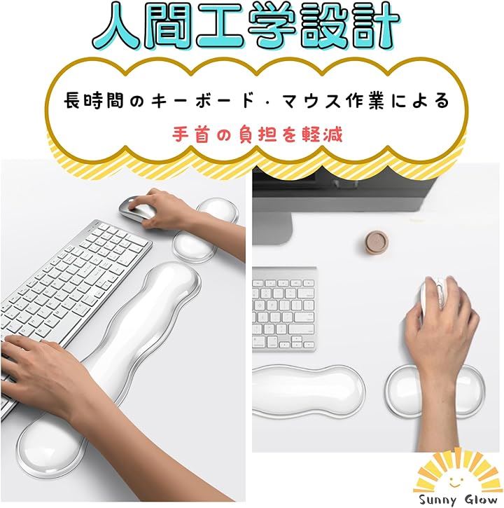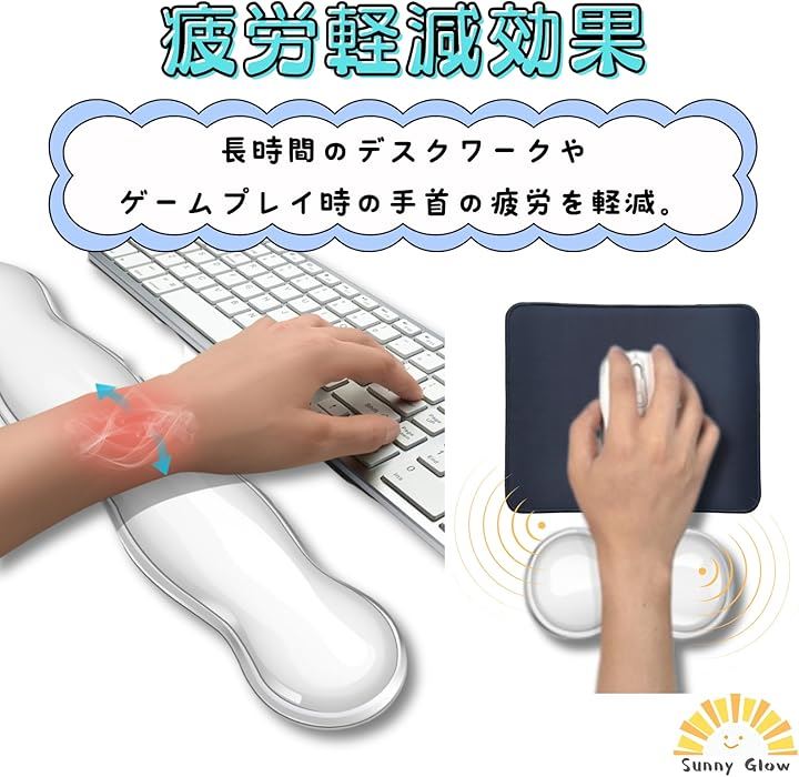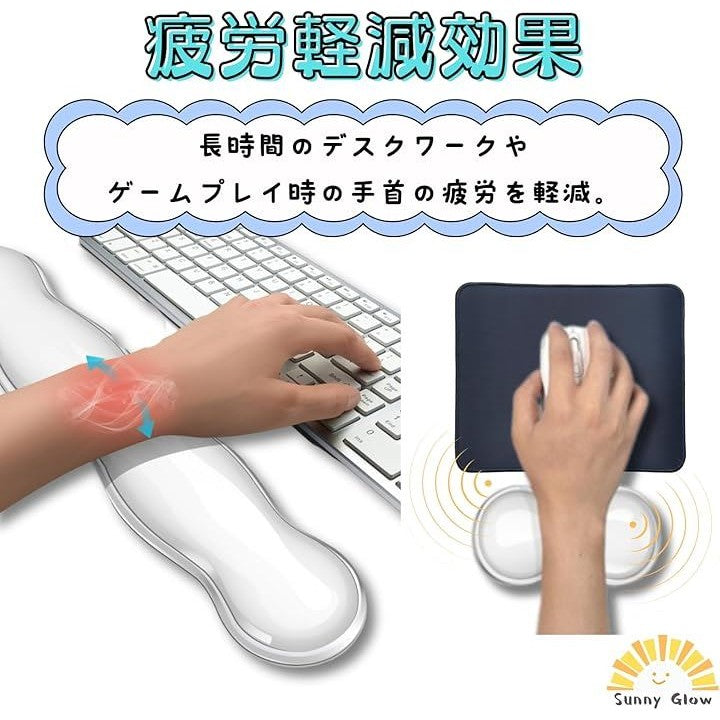 マウス キーボード リストレスト 手首サポート 手首痛み緩和 人間工学デザイン 疲労軽減 滑り止め付き デスクワーク ゲーム向け