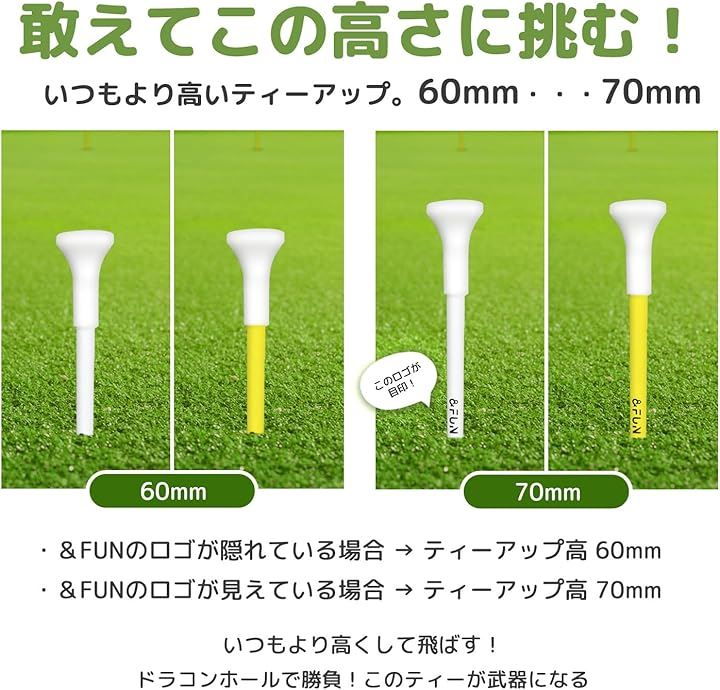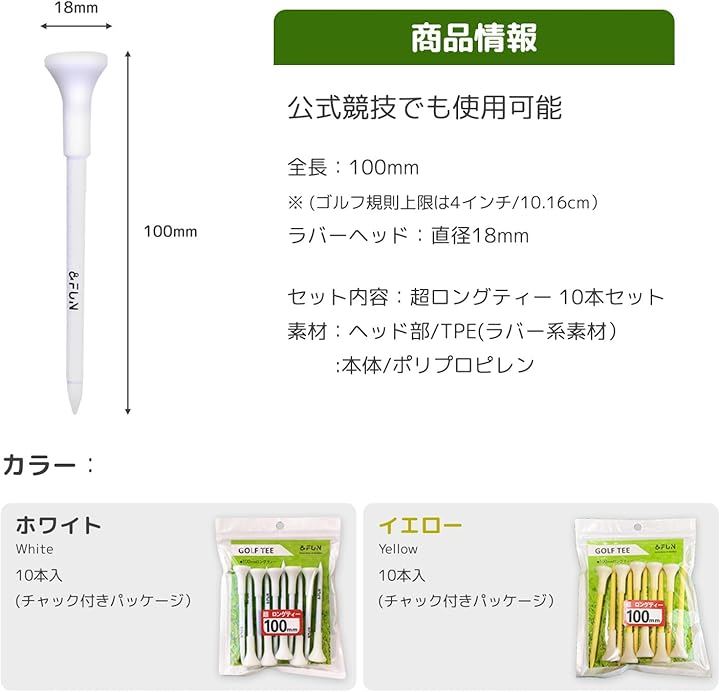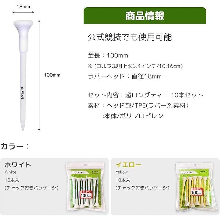 アンドファン ゴルフティー ドラコン 超ロングティー 100mm 10本入 ラバーヘッド ボールを乗せやすい