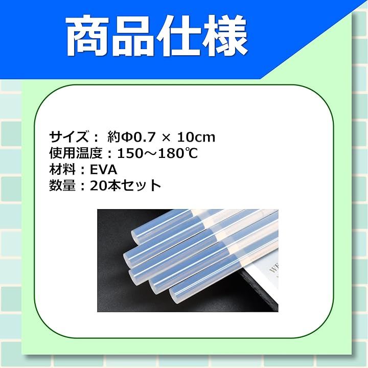 グルーガン スティック 20本入 強力粘着 透明 ホットメルト 高温タイプ ボンドガン ピタガン 替え用 接着 補修 DIY 工作 手芸用