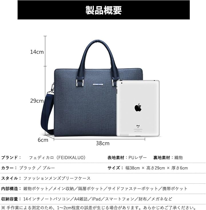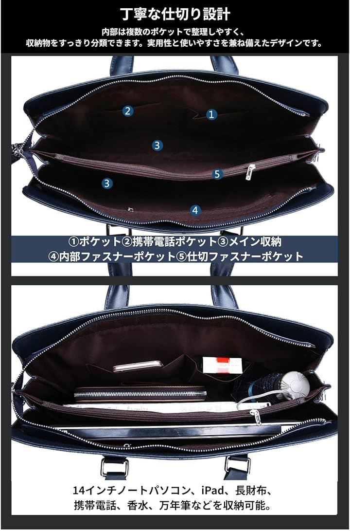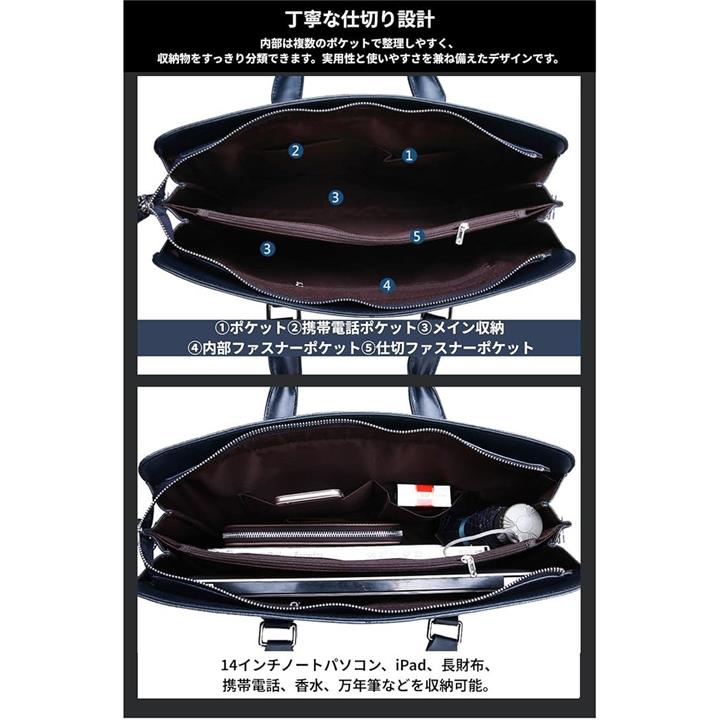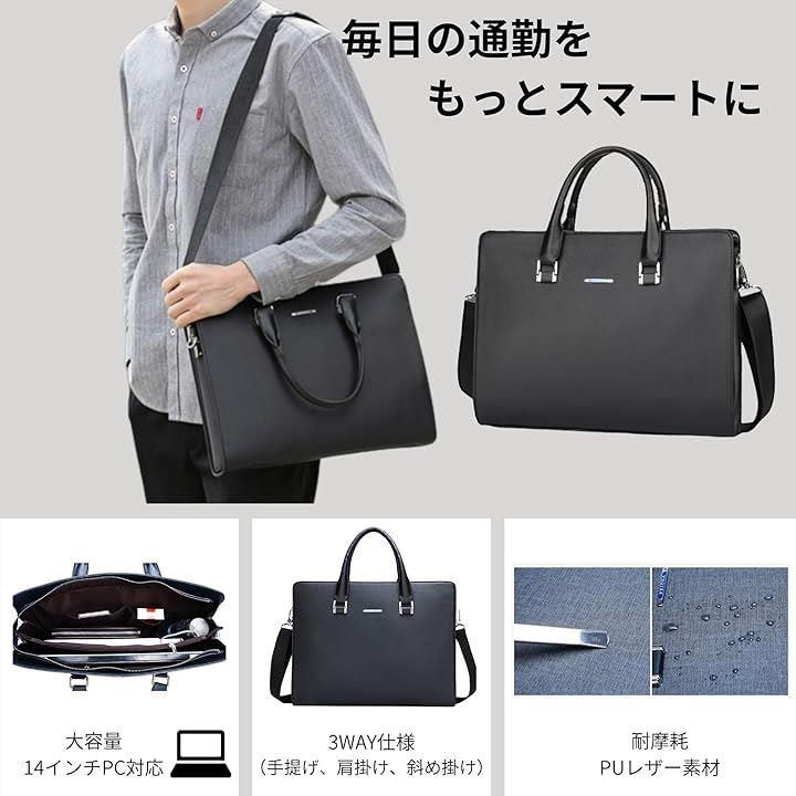 大容量 ビジネス バッグ メンズ PC収納 14インチ 対応 PUレザー 通勤 通学 手提げ ショルダー 斜め掛け 3WAY