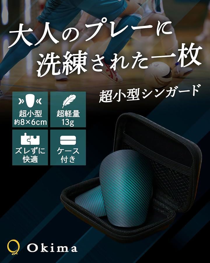 Okima シンガード 超小型8.3cmx6.3cm レガース すね当て 軽量 13g サッカー フットサル 大人用 1ペア ケース付