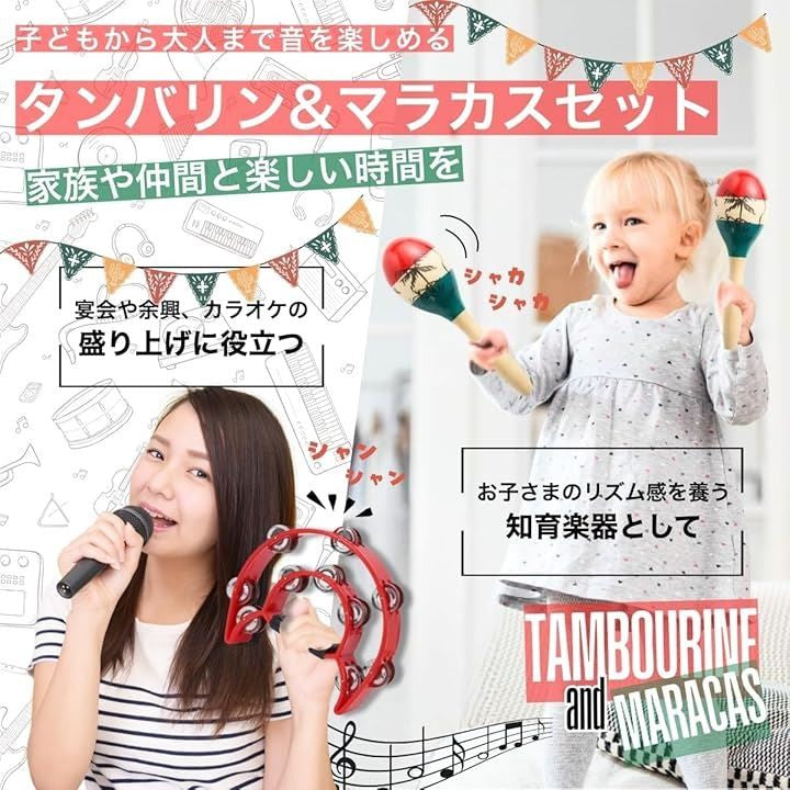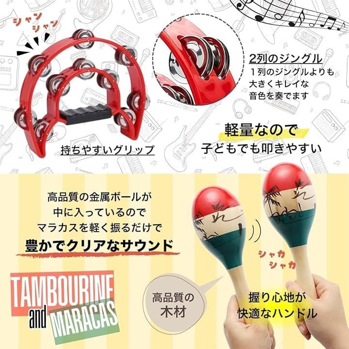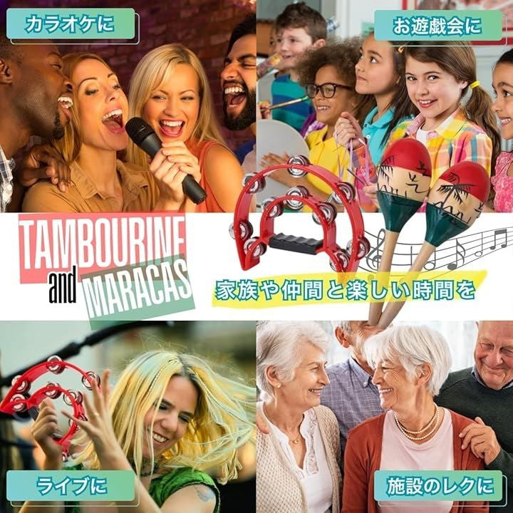 タンバリン マラカス 楽器 カラオケ パーカッション シェイカー 各2個セット
