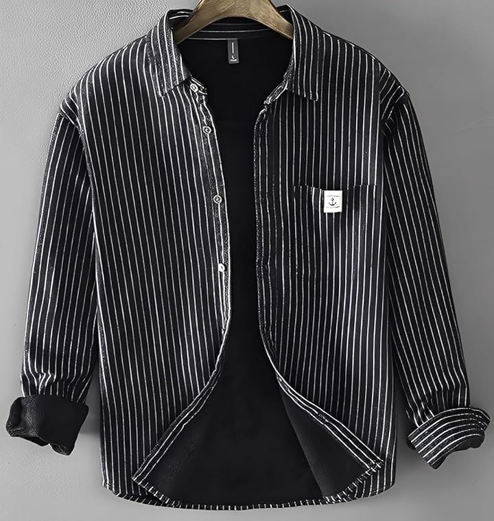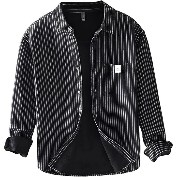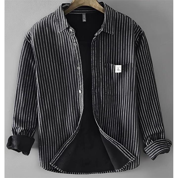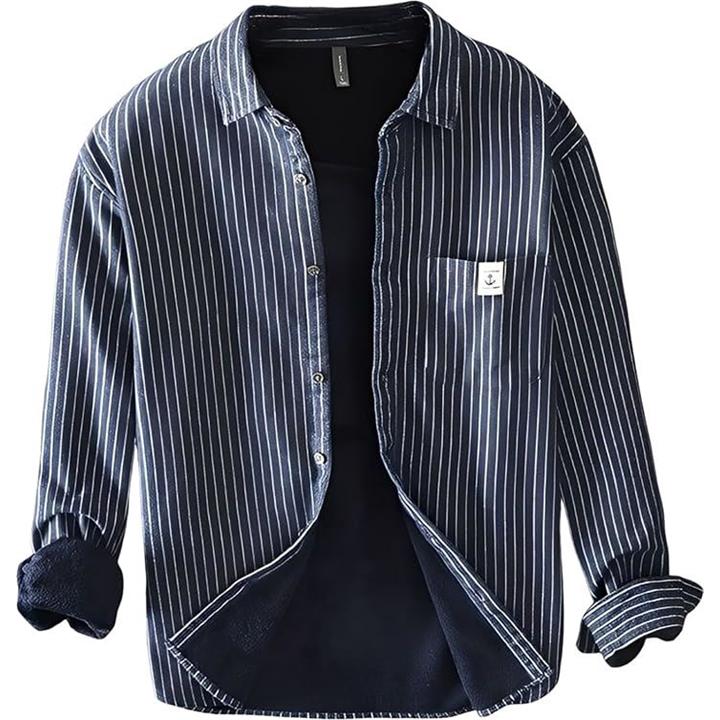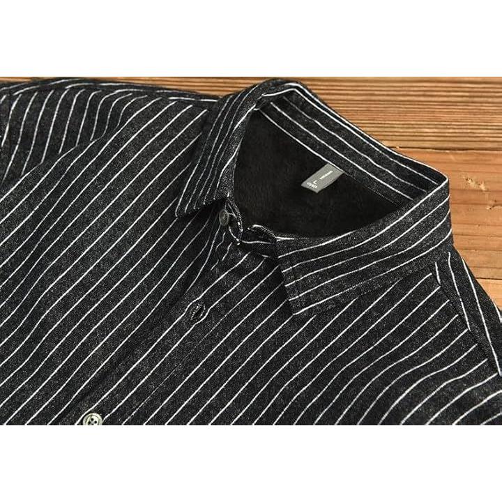 アスペルシオ ストライプ柄 裏フリース アメカジ シャツ 秋冬 防寒 あったか 襟付き トップス メンズ 長袖 裏起毛 オシャレ ストリート キレイめ アウトドア ふわふわ レトロ 透けない