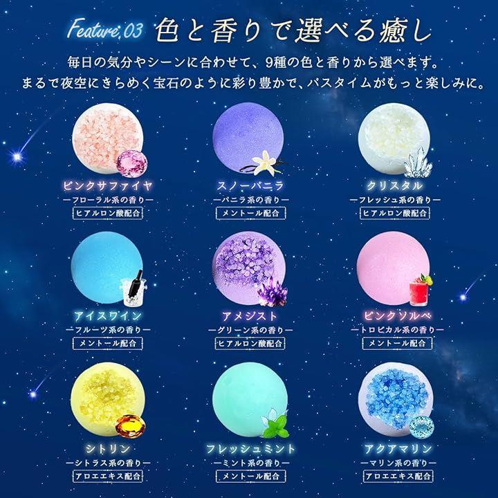 まるで夜空にきらめく宝石のように彩り豊かで、バスタイムがもっと楽しみに。