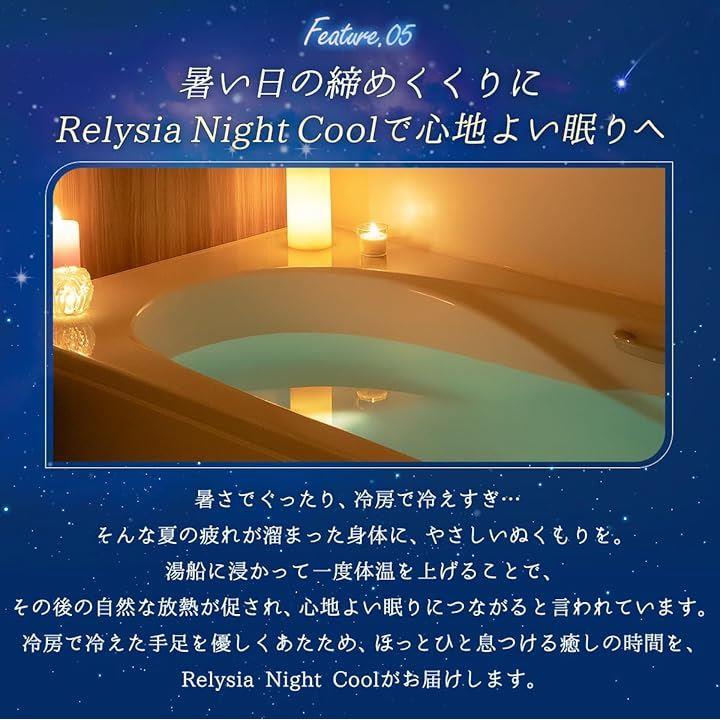 冷房で冷えた手足を優しくあたため、ほっとひと息つける癒しの時間を、 Relysia Night Coolがお届けします。