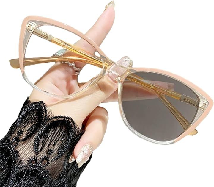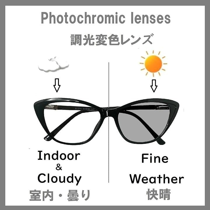 ブルーライトカット 調光 変色メガネ パソコン 眼鏡 伊達メガネ 紫外線99%カット 超軽量 キャッツアイ