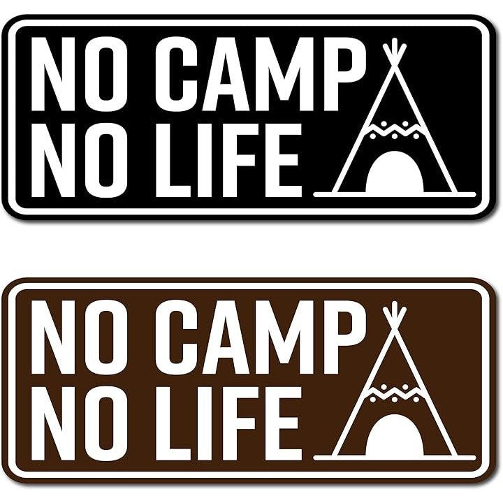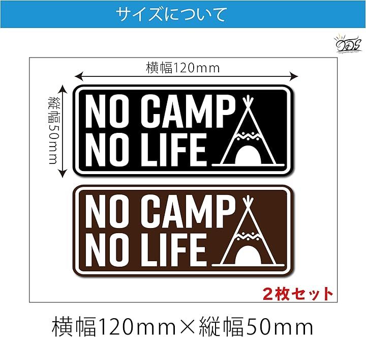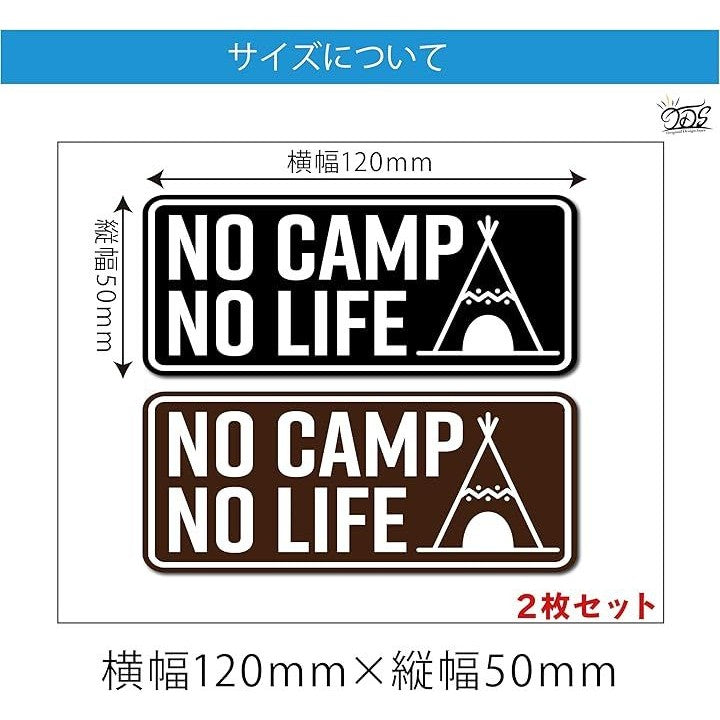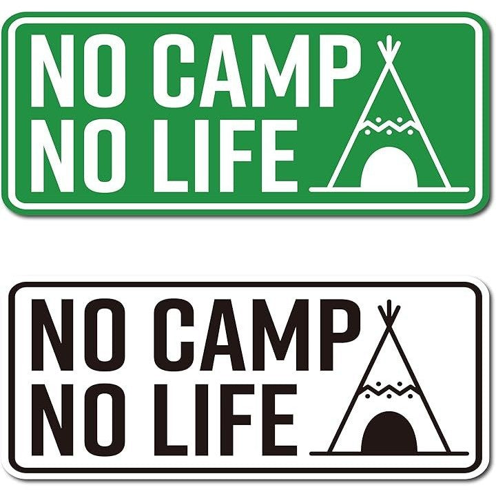 NO CAMP LIFE キャンプステッカー アウトドア用ステッカー シール W120mmxH50mm 2枚セット 車用 バイク用 クーラーボックス 屋外