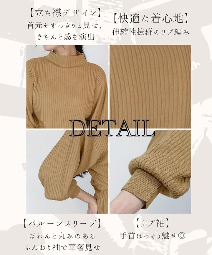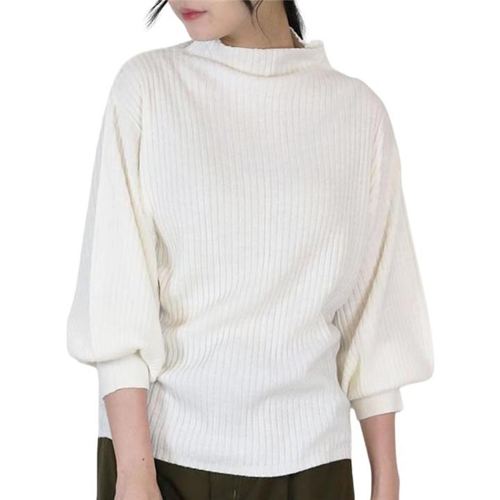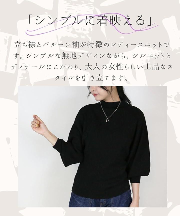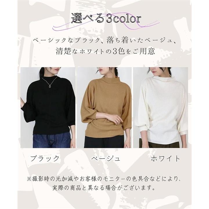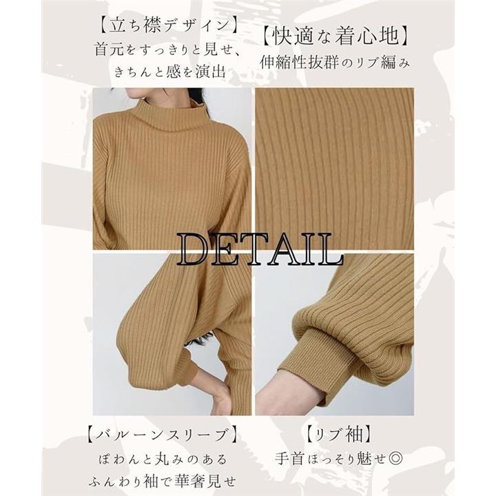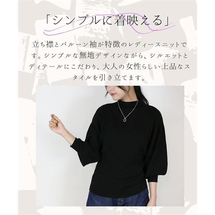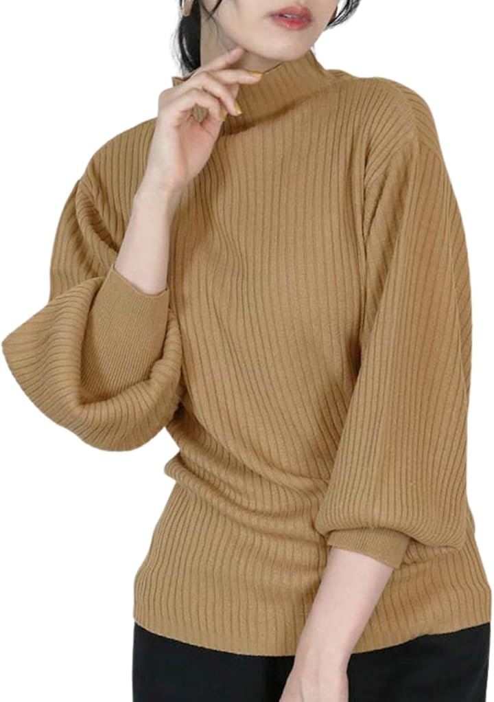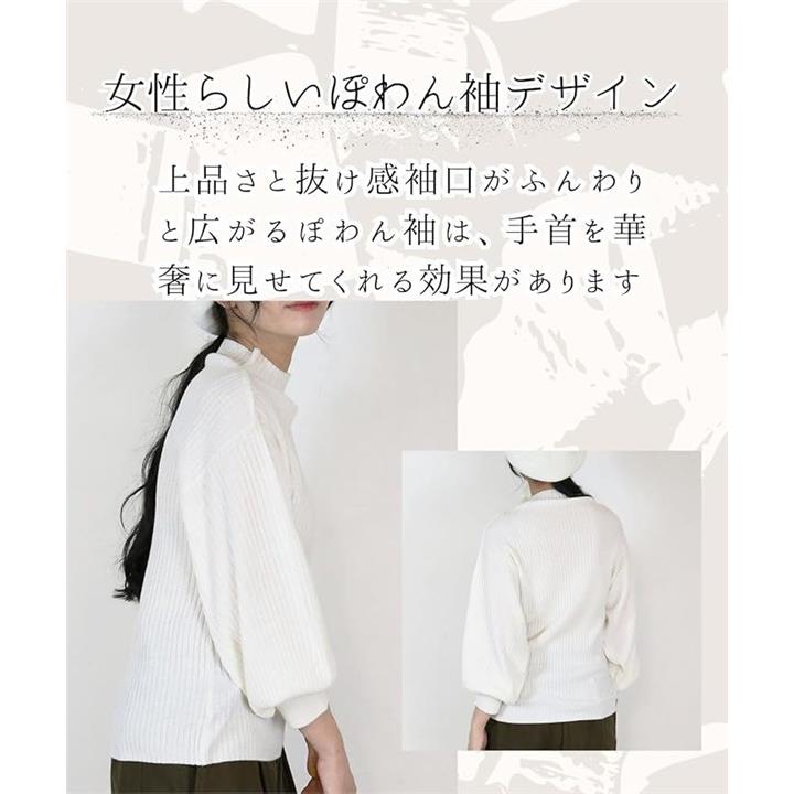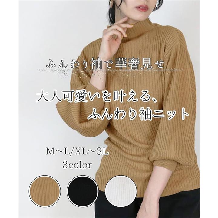 ニット トップス レディース 長袖 リブ編み ぽわん袖 セーター 体型カバー シンプル 無地 大きいサイズ カジュアル オフィス きれいめ 洗える 大人 女性 おしゃれ
