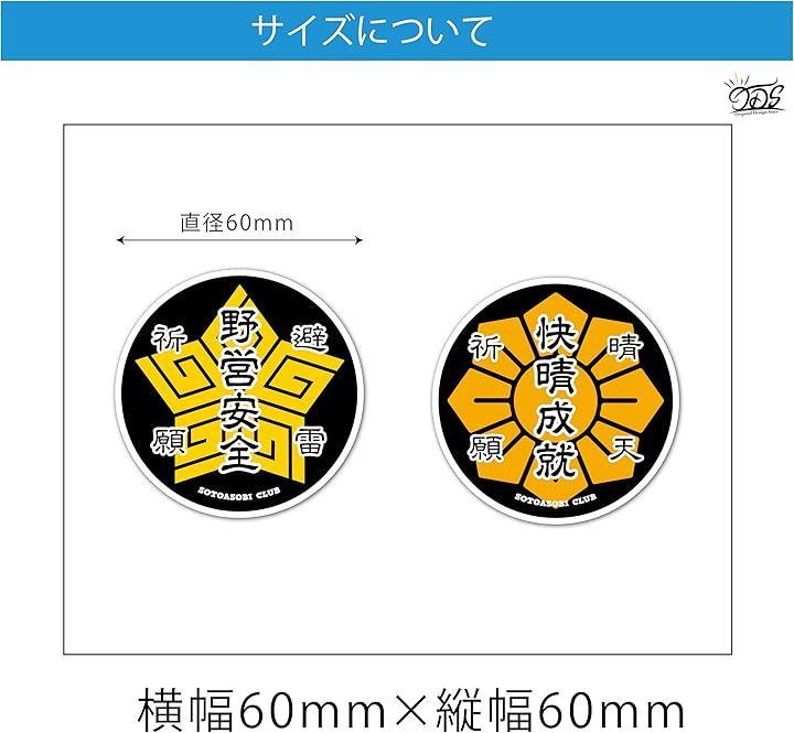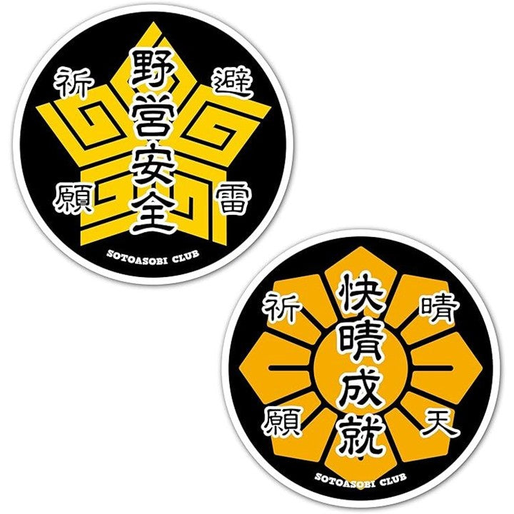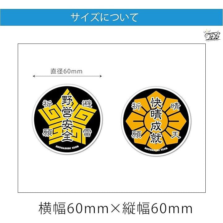 晴天祈願 安全御守 キャンプステッカー アウトドア用ステッカー シール W60mmxH60mm 2枚セット クーラーボックス 車用 バイク用 屋外 防水