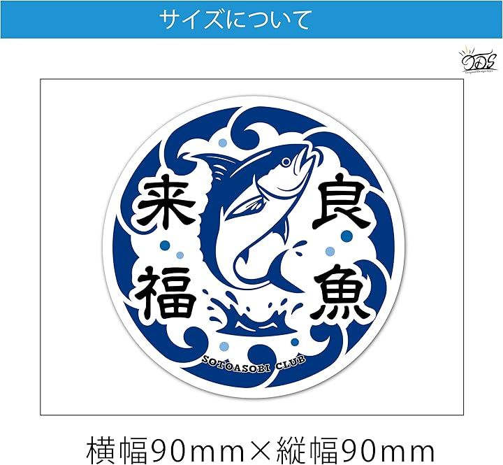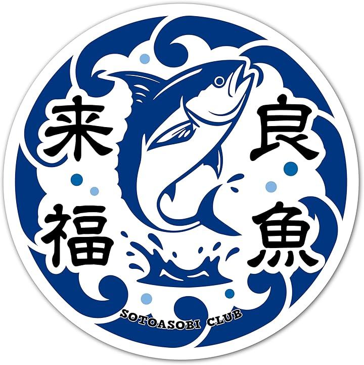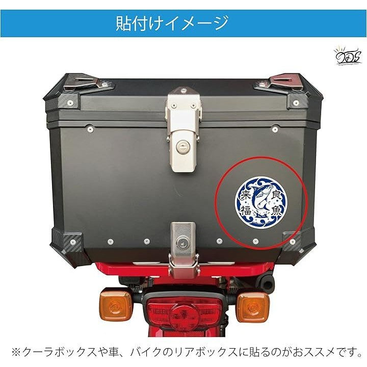 来福良魚 お守り 釣りステッカー フィッシング キャンプ アウトドア用ステッカー シール W90mmxH90mm 車用 バイク用 爆釣祈願 クーラーボックス 屋外 防水
