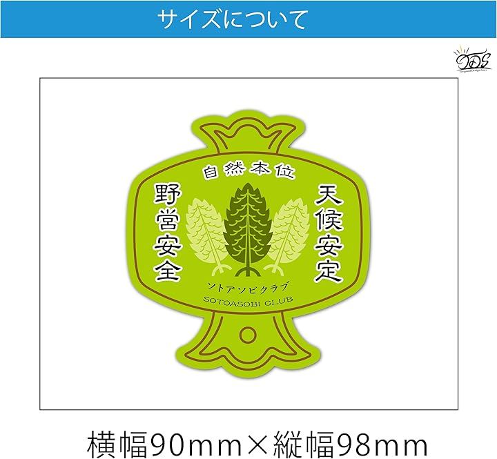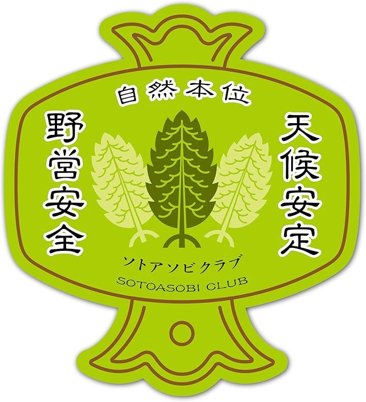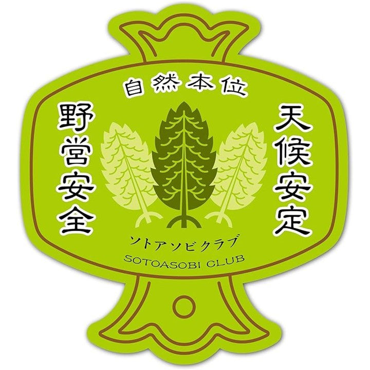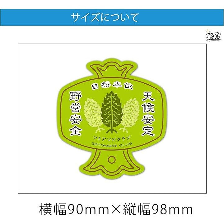 野営安全 小槌 お守り キャンプステッカー アウトドア用ステッカー シール W90mmxH98mm クーラーボックス 車用 バイク用 屋外 防水
