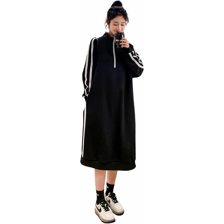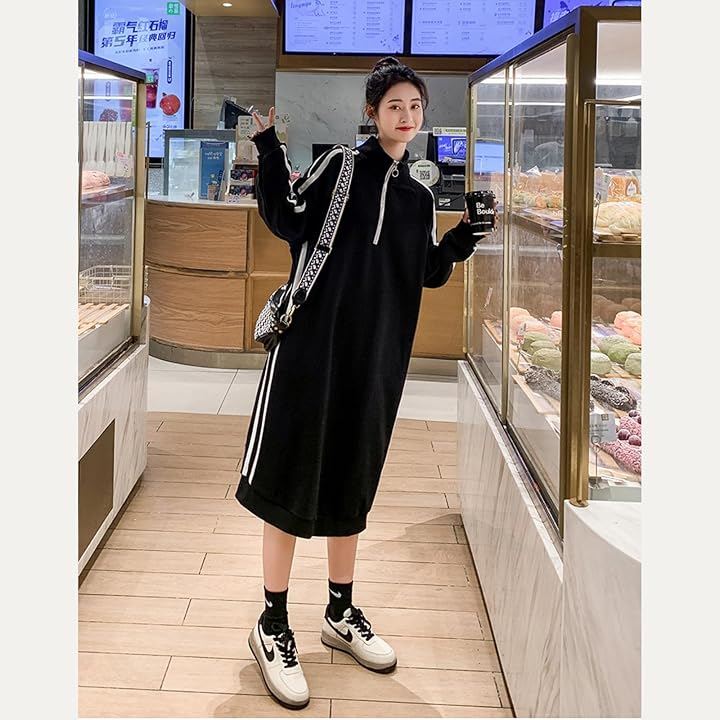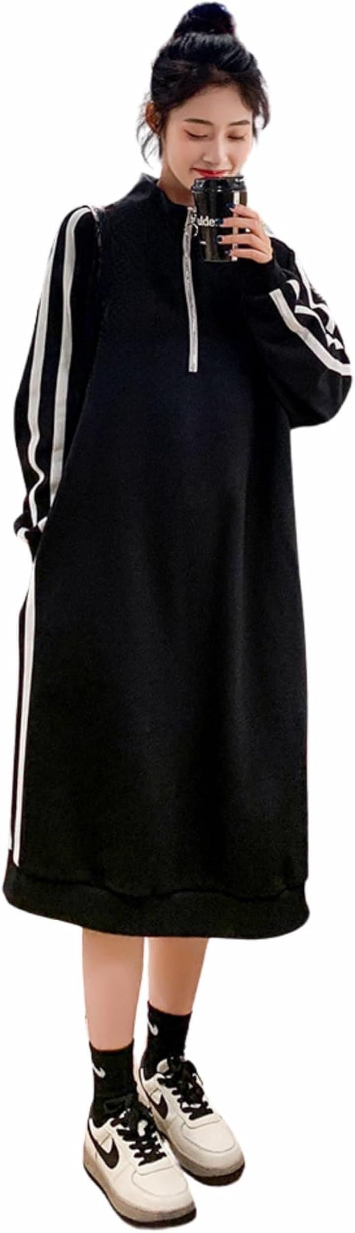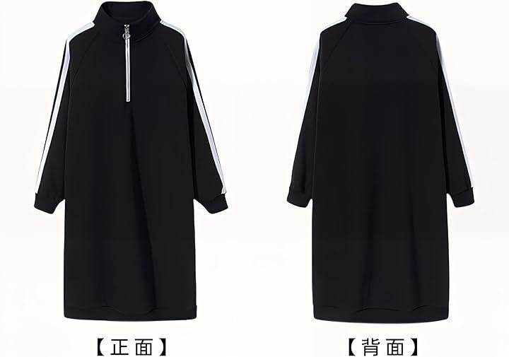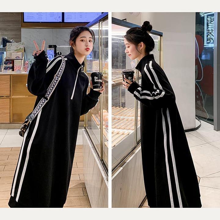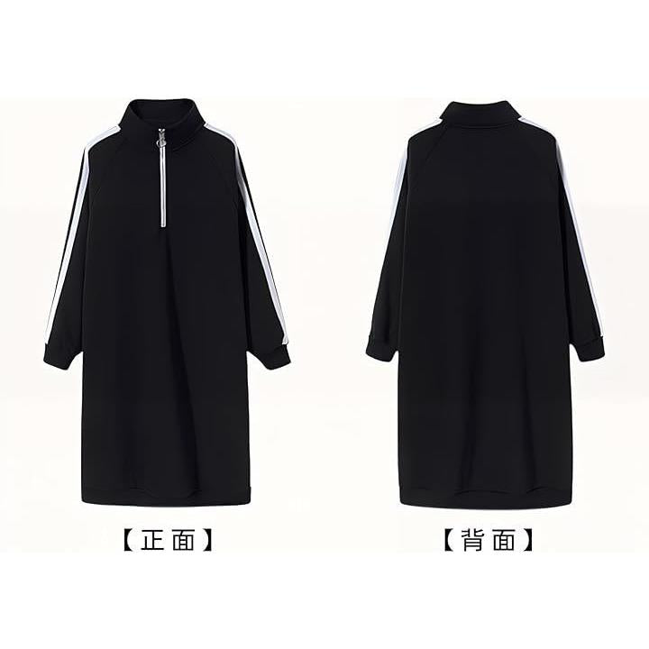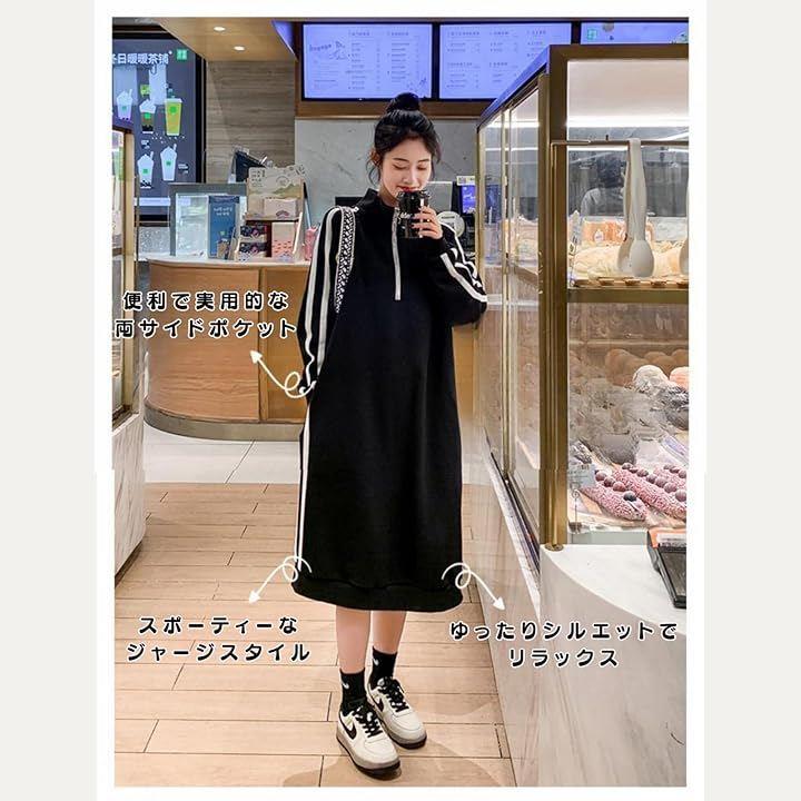 スウェット ワンピース ジャージコーデ 大きいサイズ ハーフジップ レディース 長袖 ロング ボックスシルエット 体型カバー 韓国