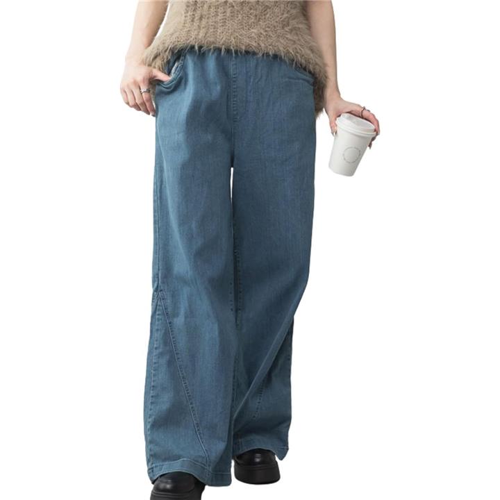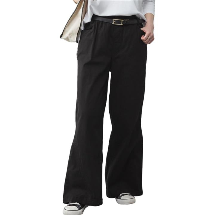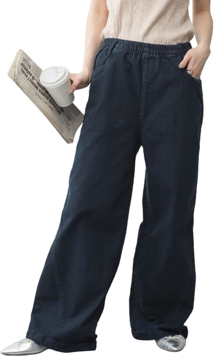 [Four leaf] ワイドパンツ レディース 美脚 ストレート ロング丈 コットン ウエストゴム 体型カバー ポケット付き カジュアル きれいめ オフィス 通勤 通学 旅行 |