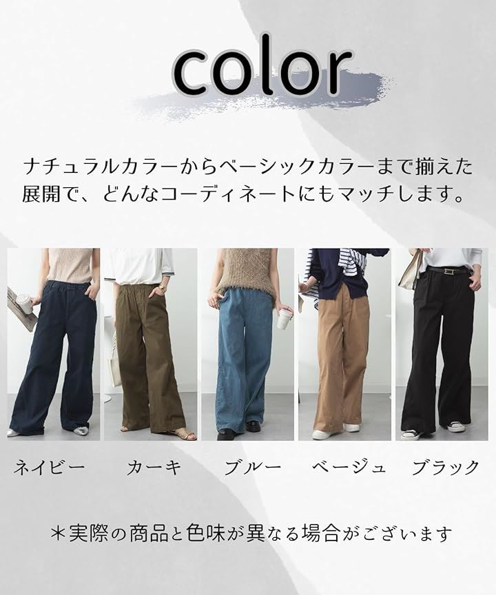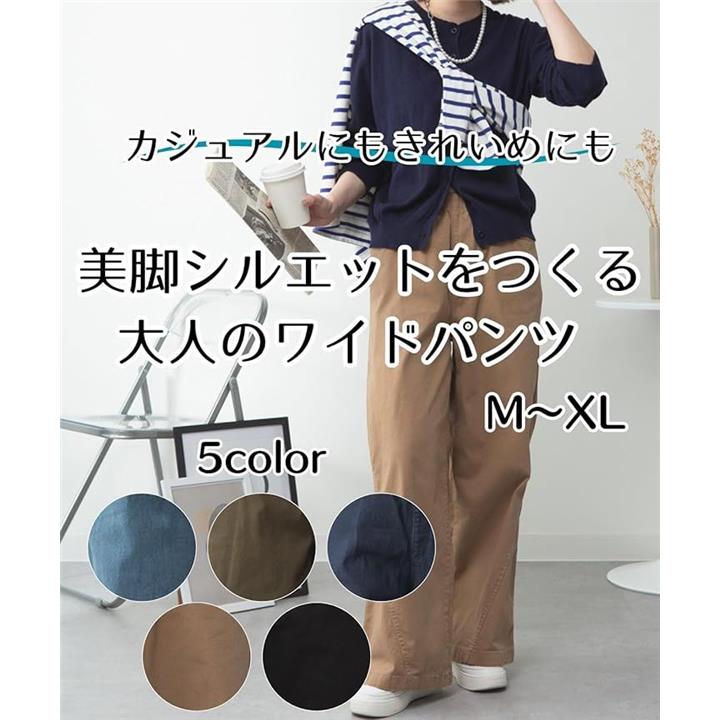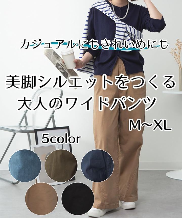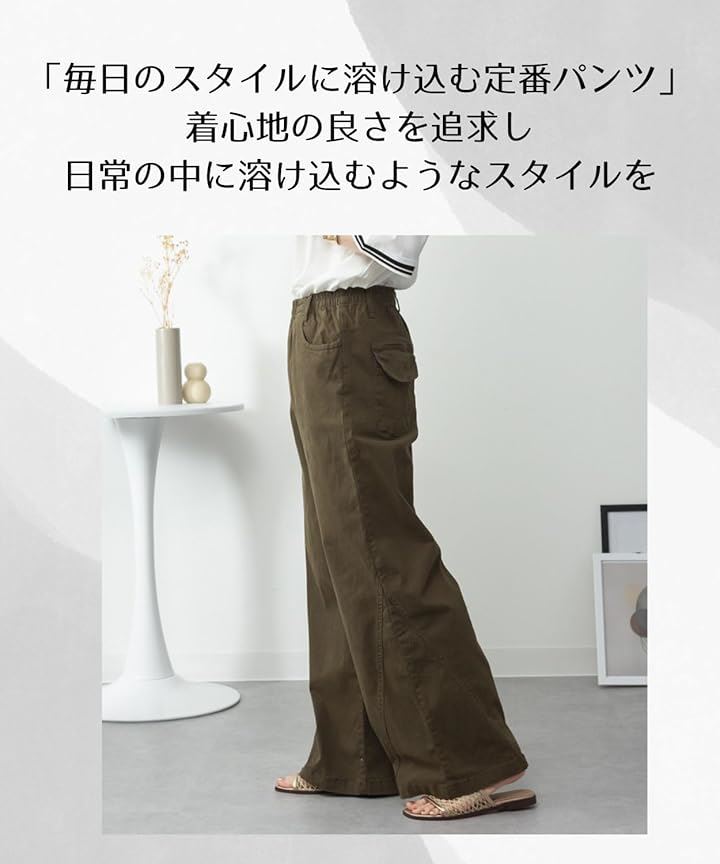 カジュアル にも きれいめ にも合わせやすい、ナチュラル な 雰囲気 の ワイドパンツ レディース。