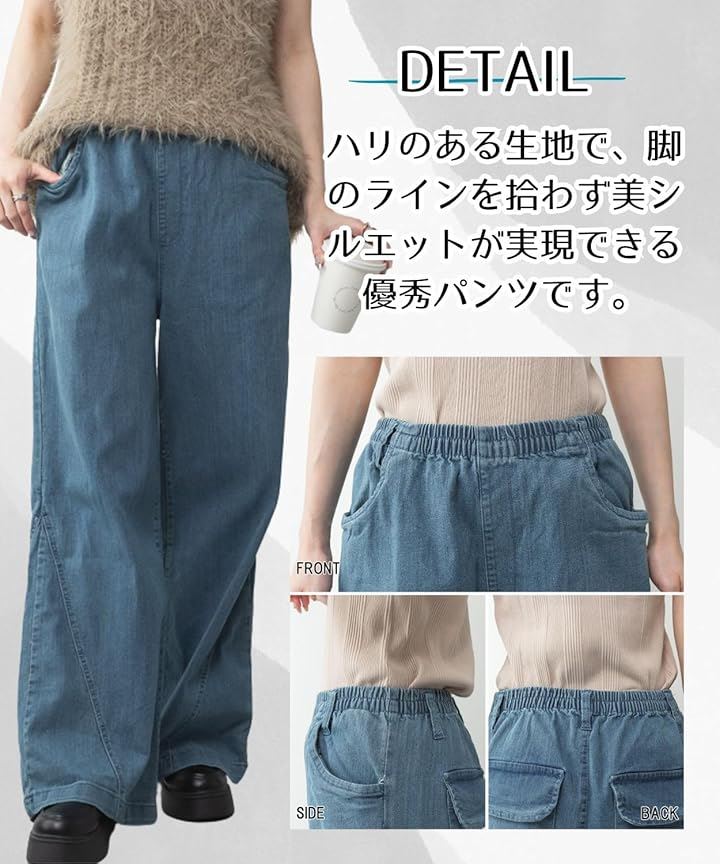 「体型カバー パンツ レディース 細見え 美ライン シルエット」ヒップ 太もも お腹まわり を自然にカバーし、脚をすっきり見せる 美ライン デザイン。