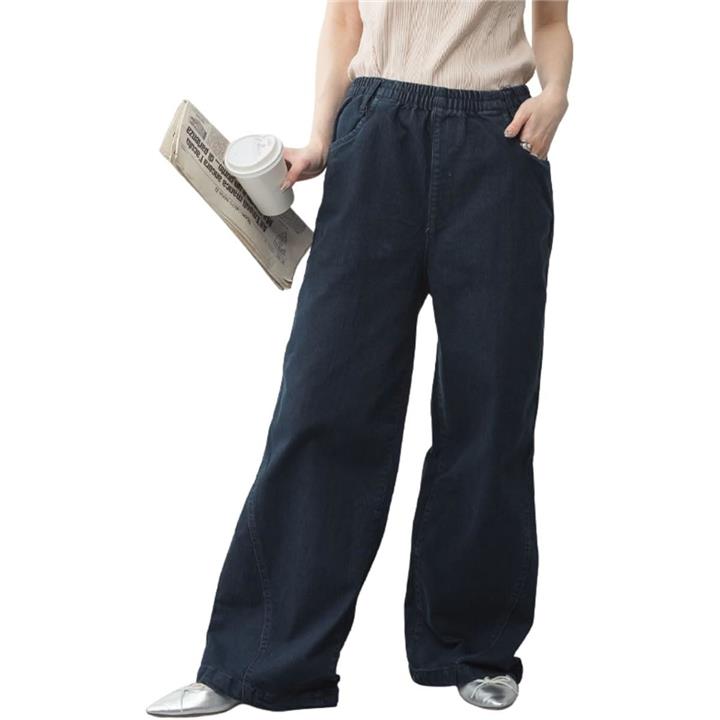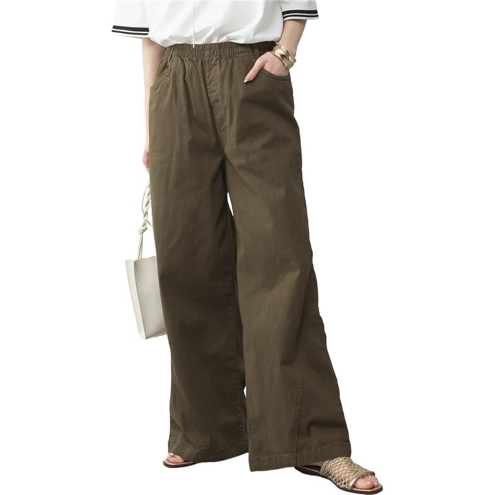 「ウエストゴム パンツ レディース リラックス フィット」総ゴム仕様でお腹まわりを締め付けず、長時間履いてもラク。