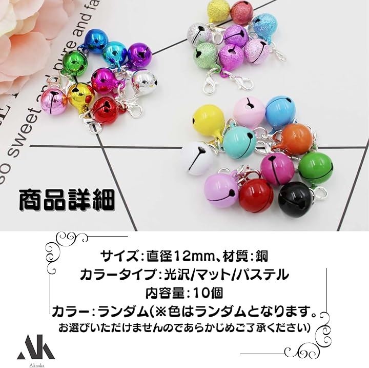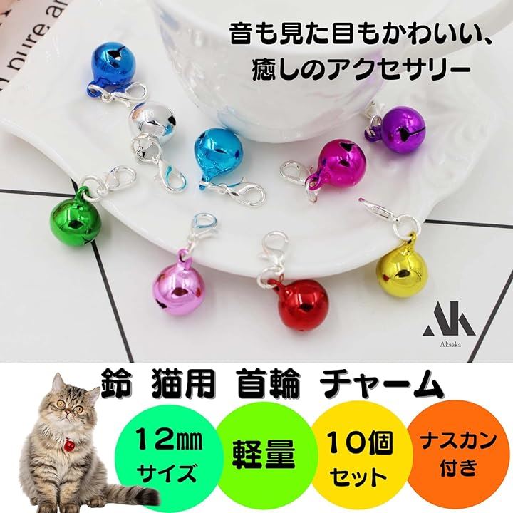 鈴 猫用 首輪 チャーム アクセサリー カラフル 手芸 パーツ ハンドメイド 12mm 10個セット