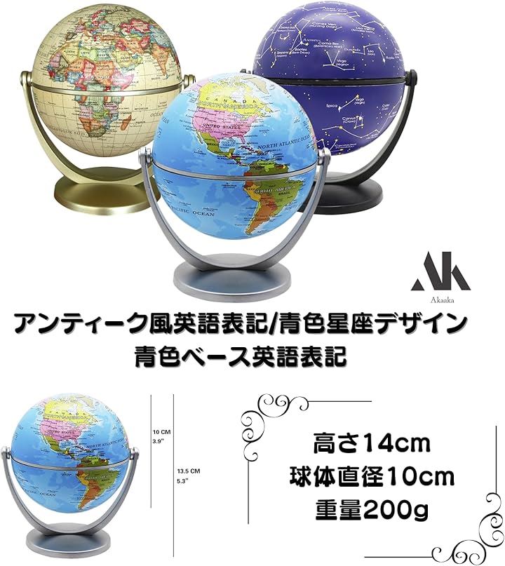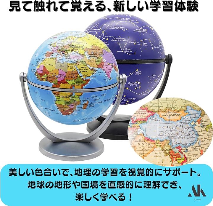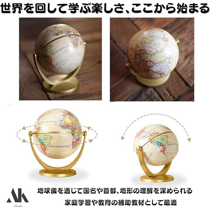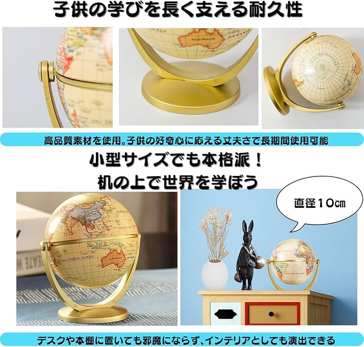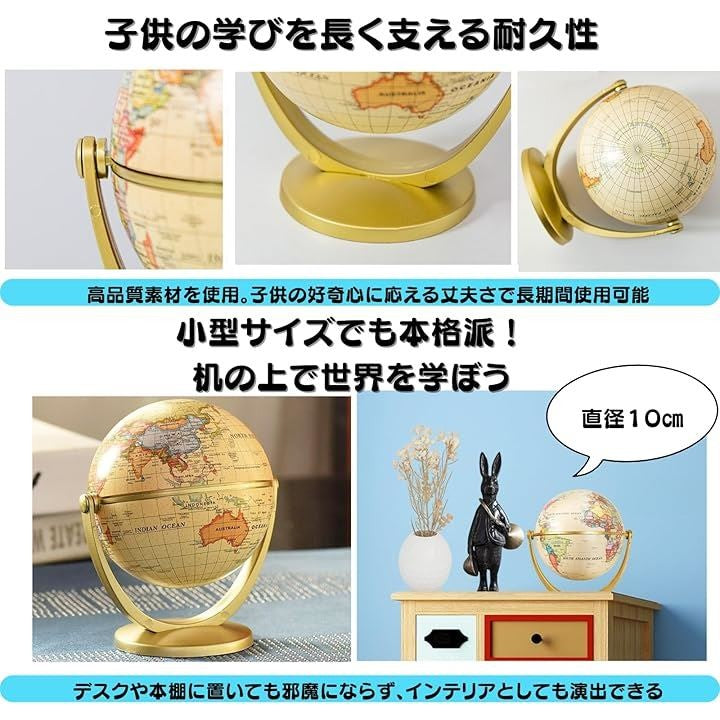 地球儀 コンパクト 軽量 卓上 学習用 子供向け 教育 ギフト インテリア 小型直径10cm 回転式 スタンド付