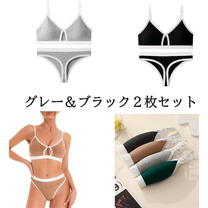 下着 Tバック 上下 セット セクシー ブラジャー ショーツ フリーサイズ 2枚 ノンワイヤー