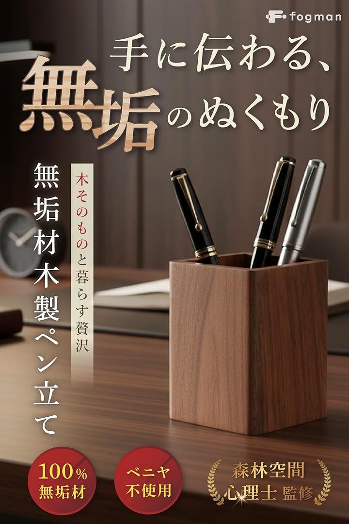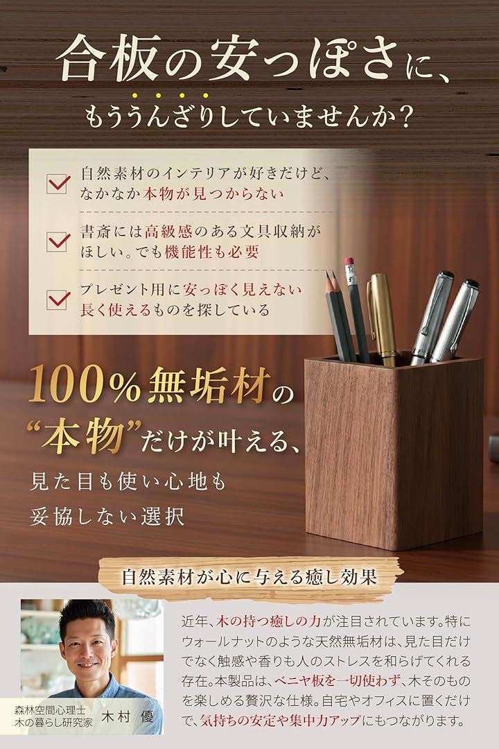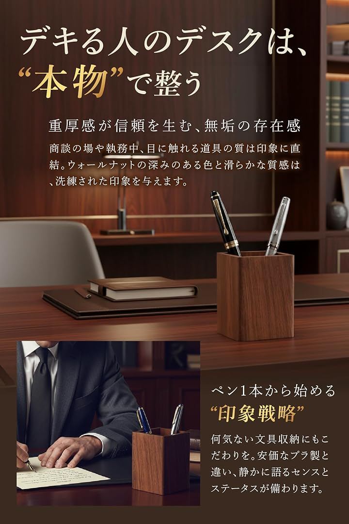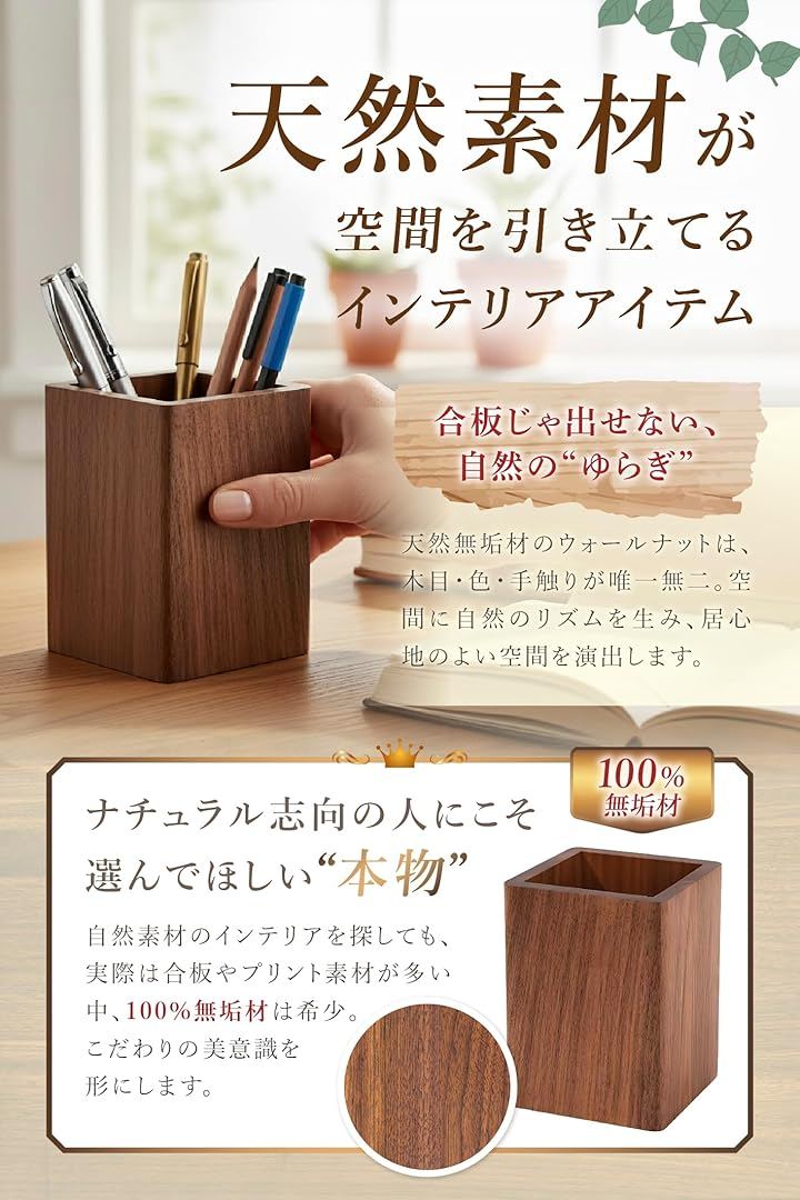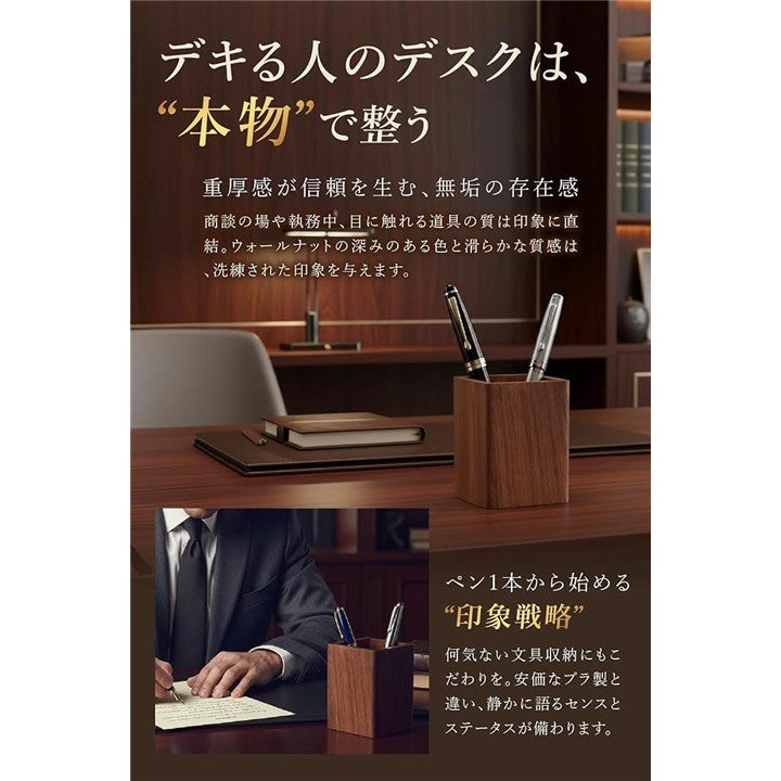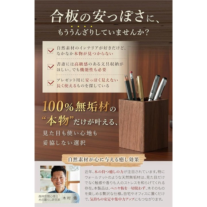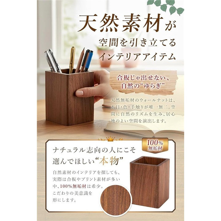 ペン立て 木製 卓上 おしゃれ 小物入れ スリム 四角 ウォールナット 収納
