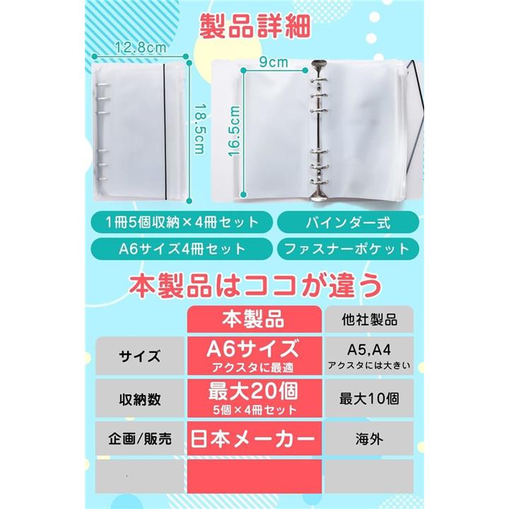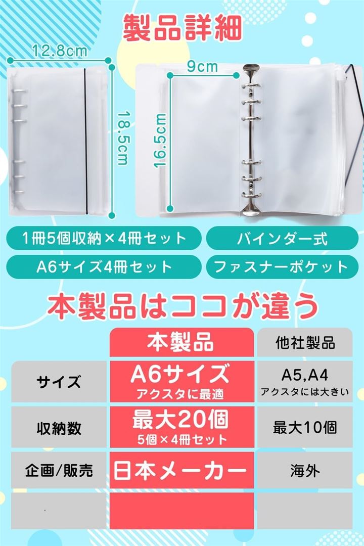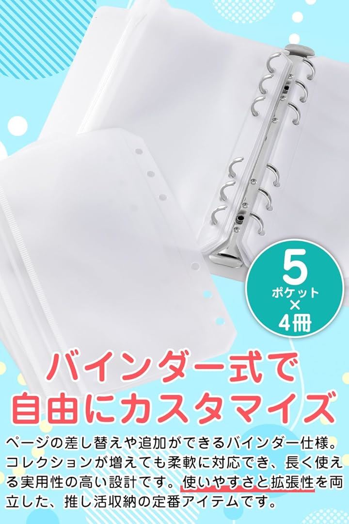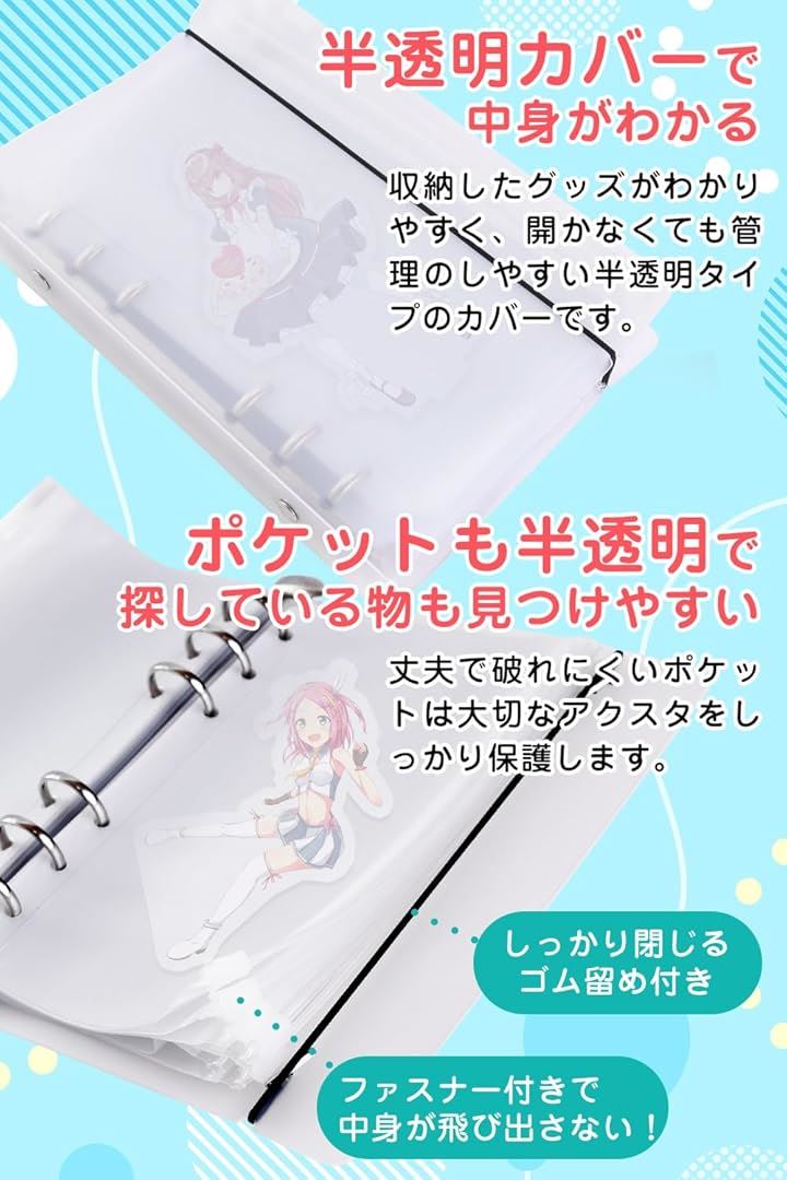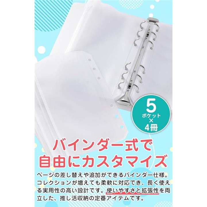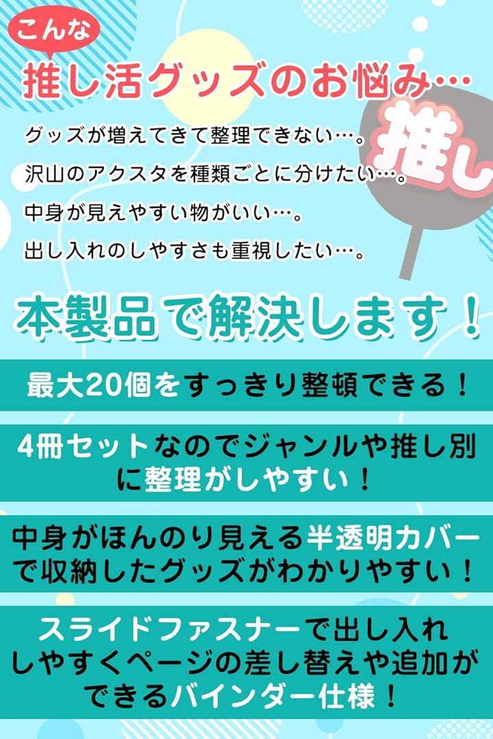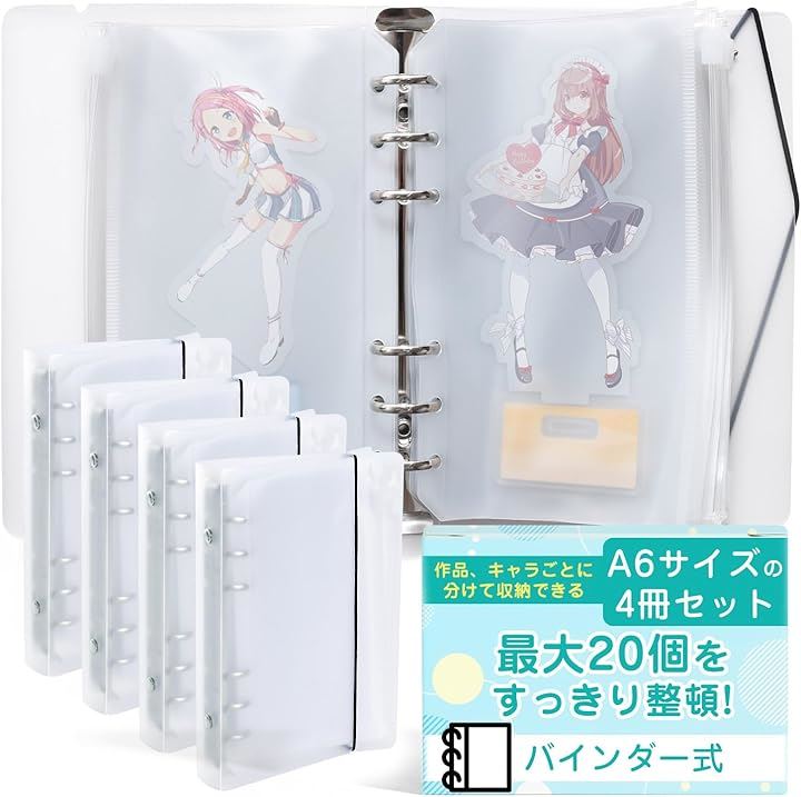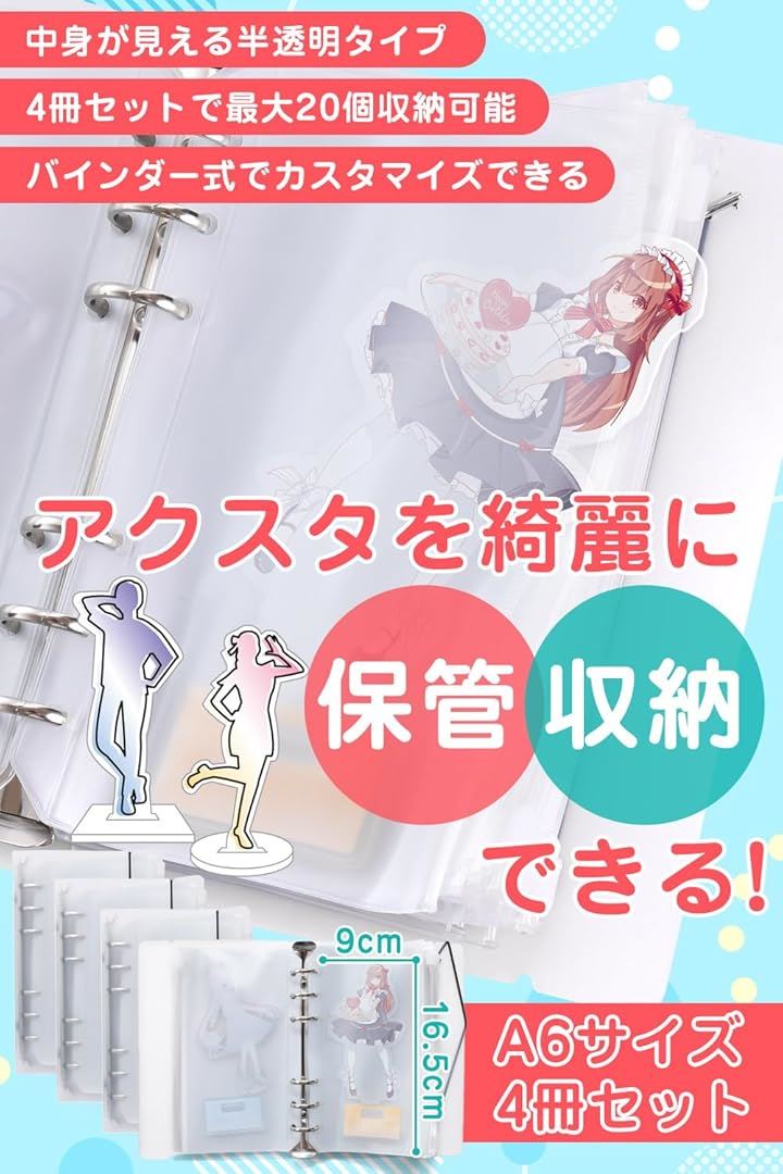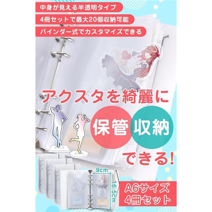 アクスタ 収納 アクスタケース 持ち運び 最大20個をすっきり整頓。A6サイズ4冊セット 18.5x12.8cm作品、キャラごとに分けて収納できるxバインダー式で自由にカスタマイズ