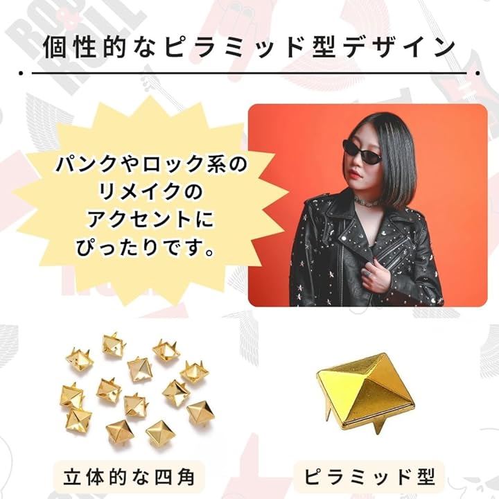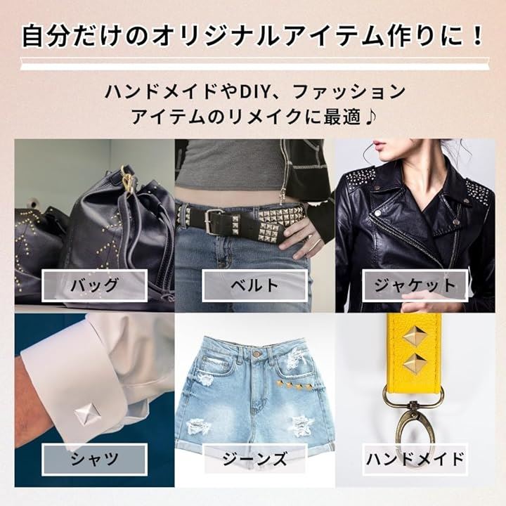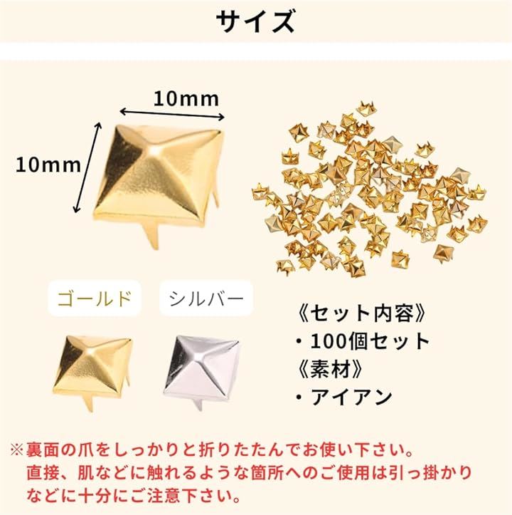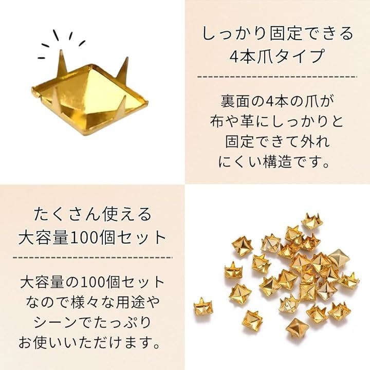 ピラミッド スタッズ 鋲 角鋲 リベット ハンドメイド リメイク パーツ ハードロック パンク バッグ ベルト 4本爪